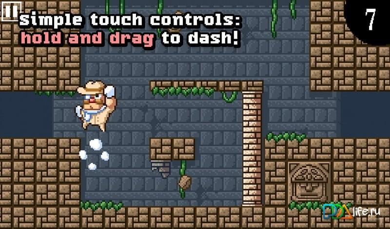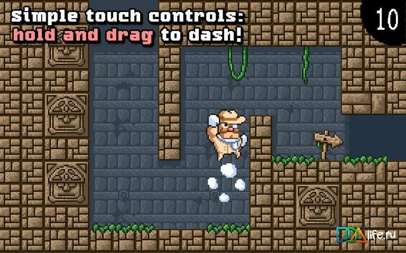 Duke Dashington - platformer for Android where you control a Duke Dashington adventurer and tireless researchers. In this game our hero goes in search of ancient treasures in ruined temples. To collect all the treasures and not die, our Duke to explore one room will be given 10 seconds, during this time, he must find a way out of it. But our hero is determined to find all the treasures, and he is not afraid of no obstacles and traps.