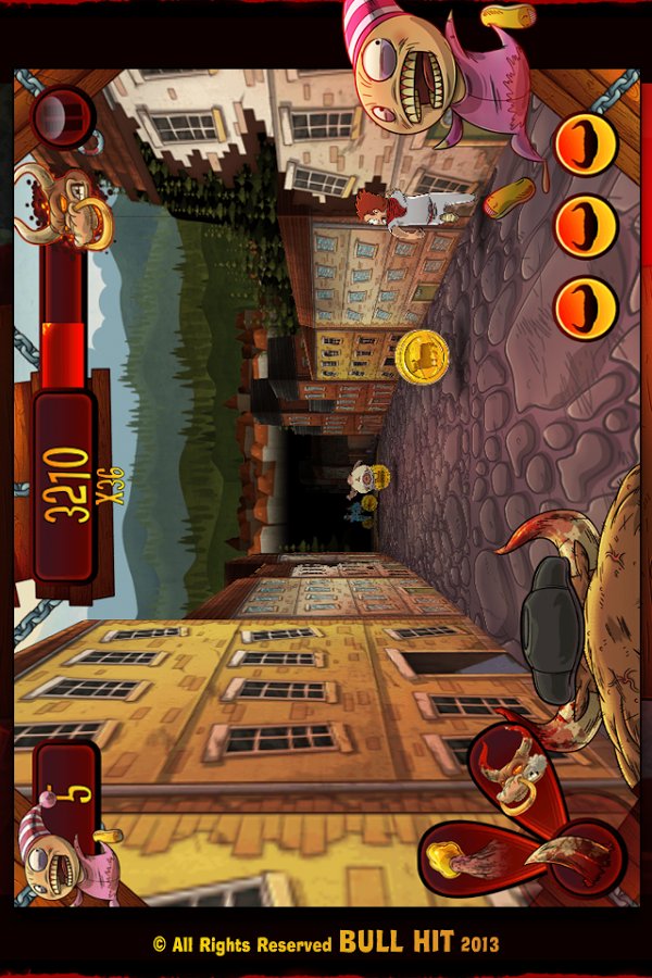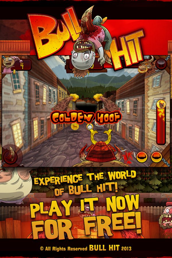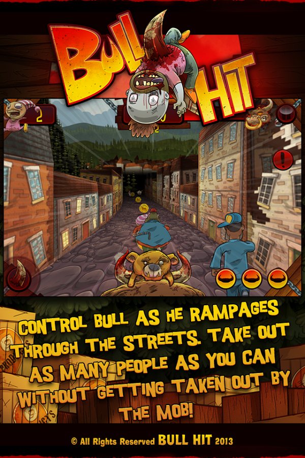 If a runner in which you will play for the bull, who is infuriated catching up with people and tramples their hooves. While our bull was asleep, his herd of cows were taken on meat in a small mountain town. And now the furious bull runs in this city and tramples all the people who gets in his way. Apply city the same damage, running through the streets of the city that people brought to the bull. Collect bonuses and wear on the bull different funny hats.