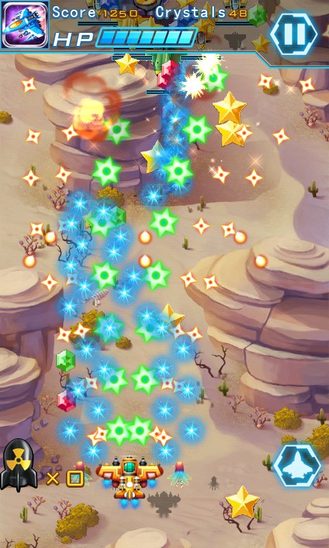 Robot Aircraft War - scrolling shooter on Android, with a wide variety of aircraft for combat. If you like games of this genre, then this game is designed for you you come down a barrage of gunfire, bombs and missiles. You ll be attacked by various enemies, which you have to shoot or they will destroy you. Choose paranensis plane, each of them has individual characteristics, and maneuver through various places, battling enemies using all your skills to control the aircraft. The game has bright cartoon graphics and excellent background music, which is in harmony with the game.