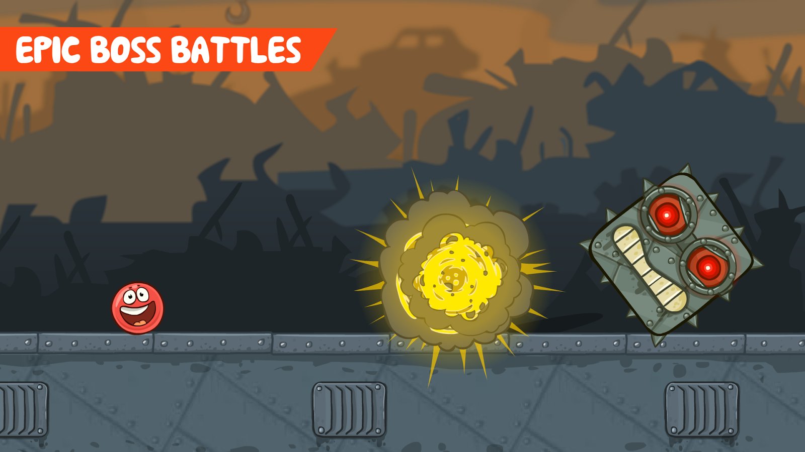 Red Ball 4 – Fun and not forced a game for Android. A game where the evil minions want to squeeze all the square, to capture the entire earth, and thus to make a square the planet Earth! The cubes need to fight back, but who will do it? As always the red ball to the rescue, that would defeat the evil cubes and save the planet is round. You will have to help red ball to do it. Ride along with him for 45 interesting levels accompanying light and fun music, go through a lot of tricky traps and set the heat evil blocks!
