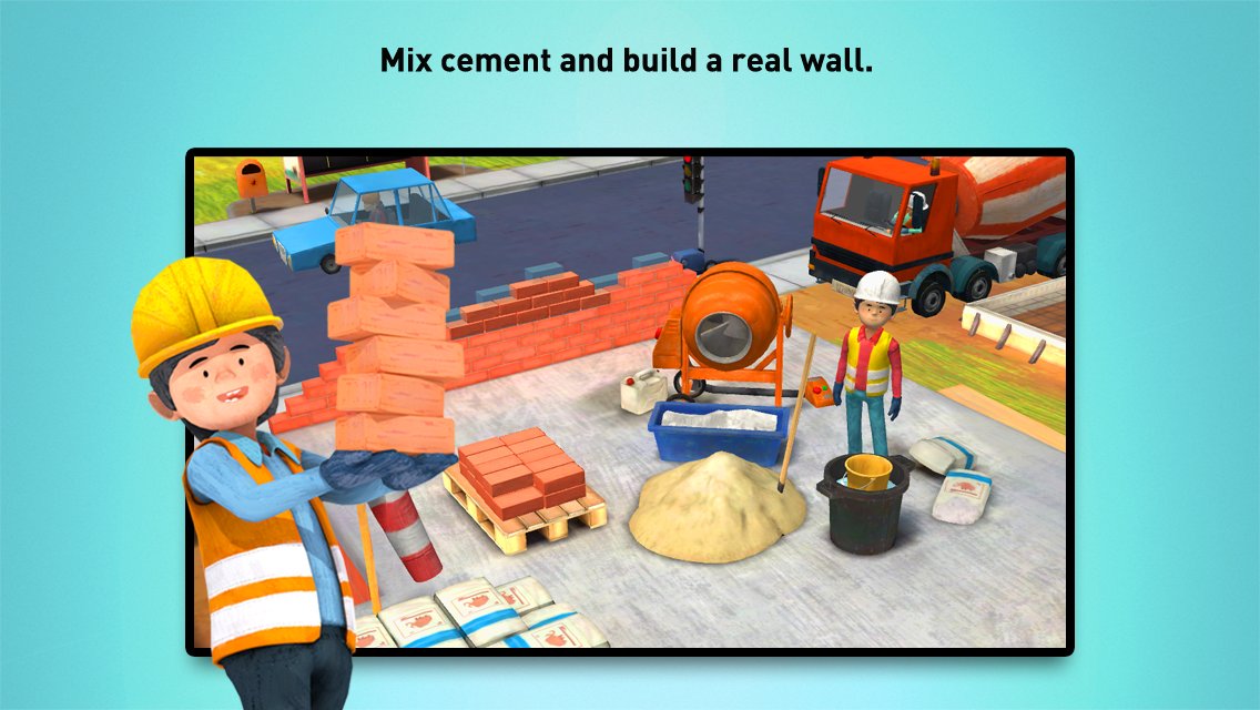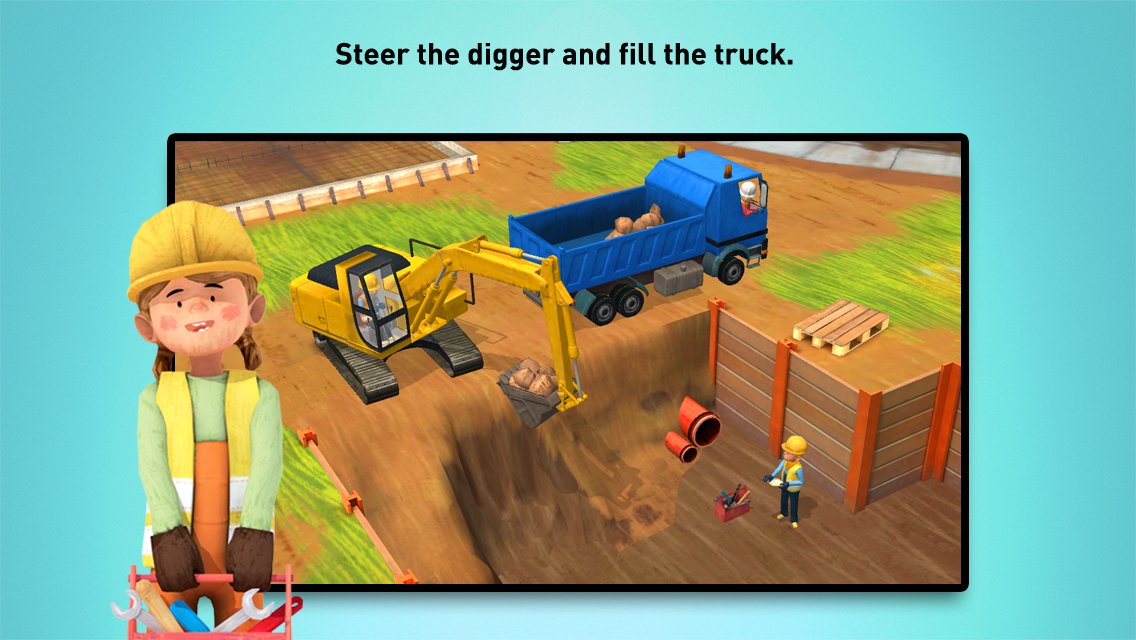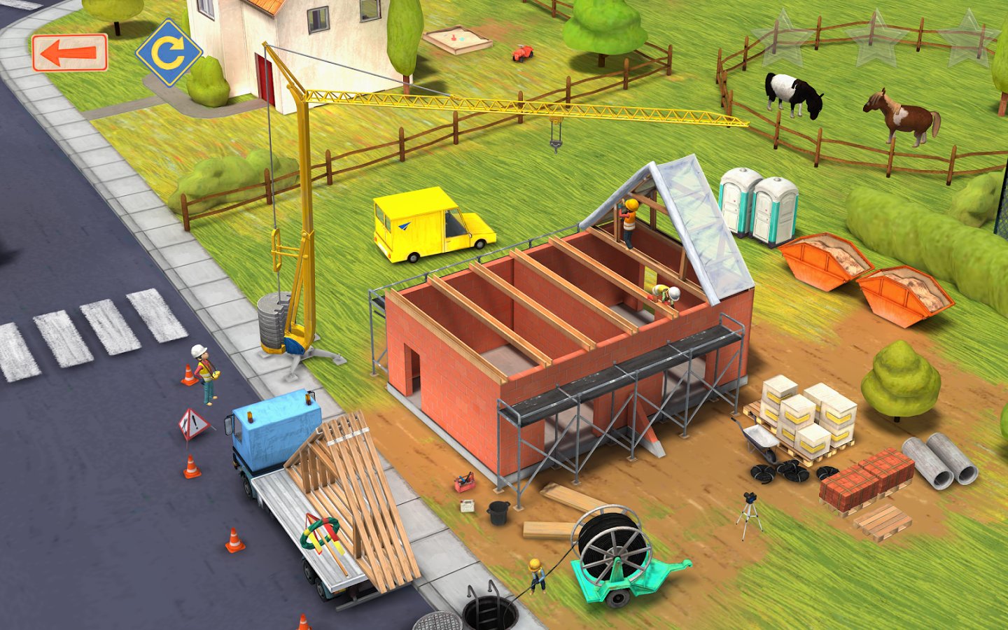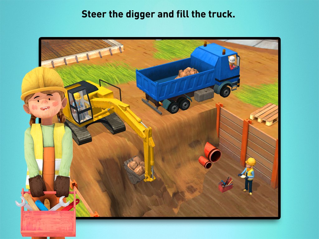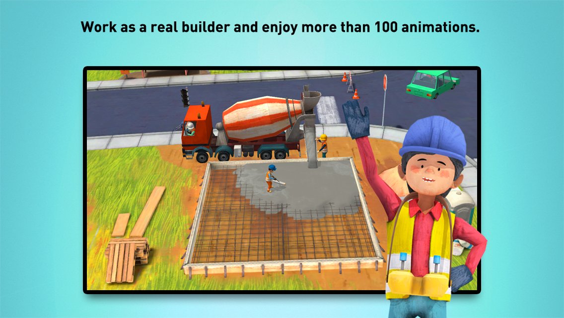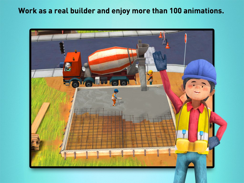 Little Builders – fun game for kids with which they will go to the construction site. In this game your child can drive a digger, paint the house in different colors, to install a roof on a house with a crane, knead the cement, control of the harvesting machine, and more. Help little builders build big in them and watch their funny incidents that will occur during operation, water breaks, a Builder falls into a hole, bricks falling down have not bonded with mortar and much more. The game has 7 interactive scenarios contain over 100 animated scenes and unusual surprises from little heroes.