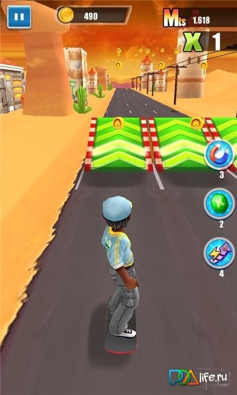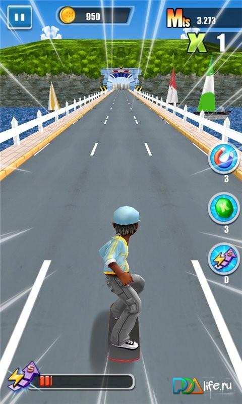 Speed Skate - В этой игре вы будете свободно кататься по дорогам в городе, перепрыгивая или избегая препятствия. Объезжайте или перепрыгивайте через доски, коробки, автомобили в этой игре с 4 различными сценариями игры и ролями. Также вас ждёт новая комбинация склонов и ловушек. Покажите в этой захватывающей игре высокую скорость и используйте свою тактику, чтобы получить высокие баллы катания. Не пропустите эту увлекательную игру, в которой вы почувствуете свою полноту свободы и ветер высокой скорости! Прекрасная графика, оригинальное звуковое сопровождение, очень много уровней - всё это ждёт вас в этой игре. Дерзайте!