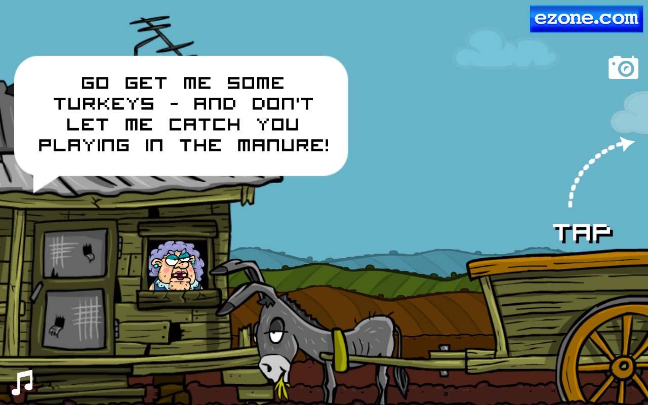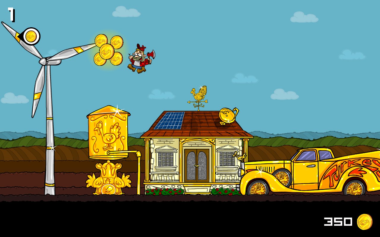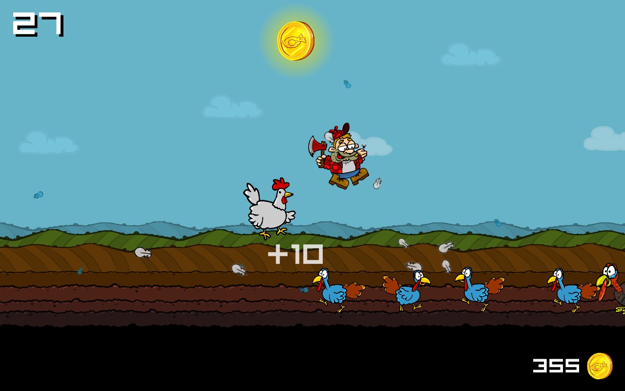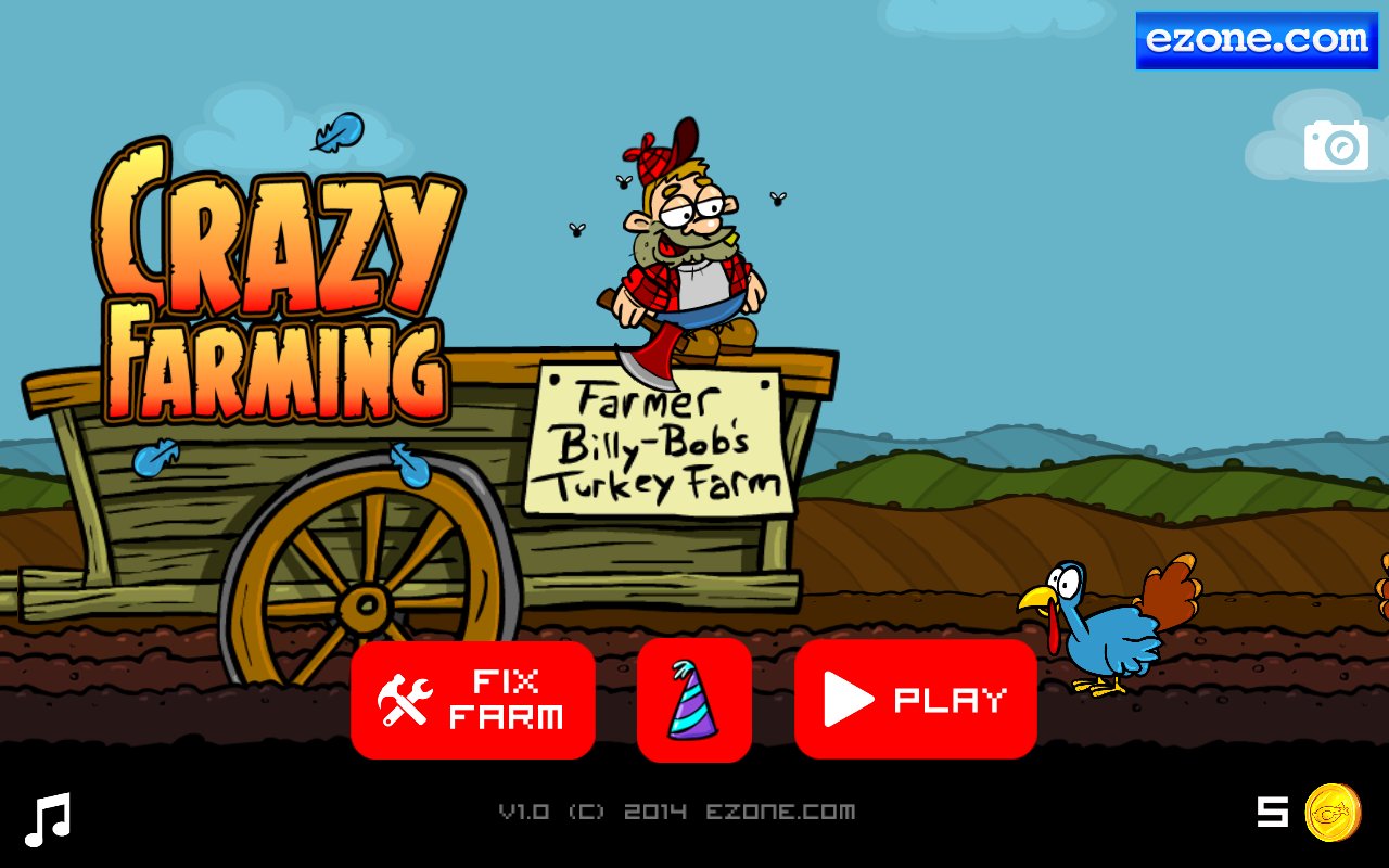 Crazy Farming – веселая аркада, в которой вы будете помогать милому фермеру Биллу Бобу рубить индеек. Его ферма просто кишит индейками которые готовы отправится на прилавки магазинов. И теперь наш герой берет топор и отправляется рубить несчастных птичек. Прыгая по индейкам вы перемещаетесь все дальше по ферме, а если промахнетесь то окажитесь по шею в навозе. Прыгайте по индейкам и не заставляйте свою злую мать ворчать на вас. Это веселая игра с забавными персонажами, где у вас будет возможность вдоволь повеселиться и насладиться отличным юмором. Одевайте вашего героя в различные шляпы и делайте его еще более нелепым и смешным.