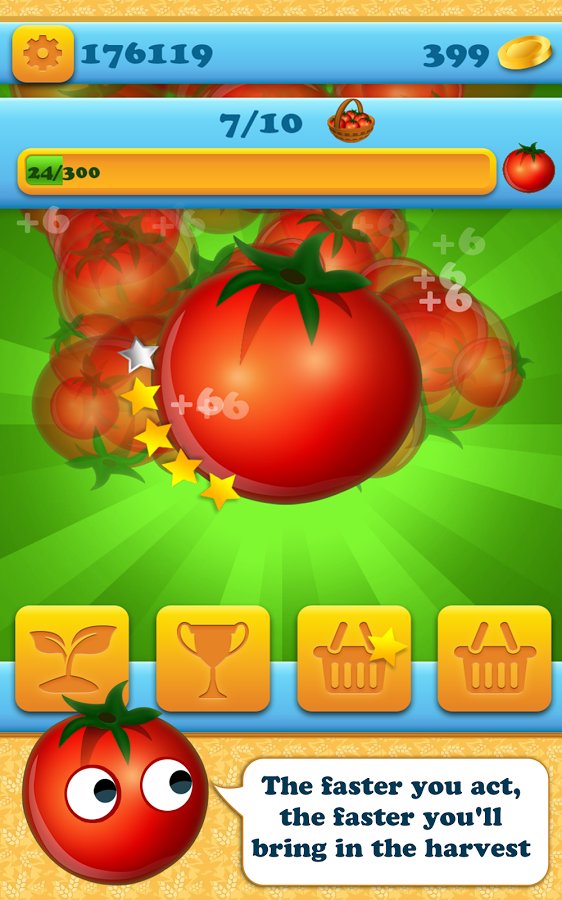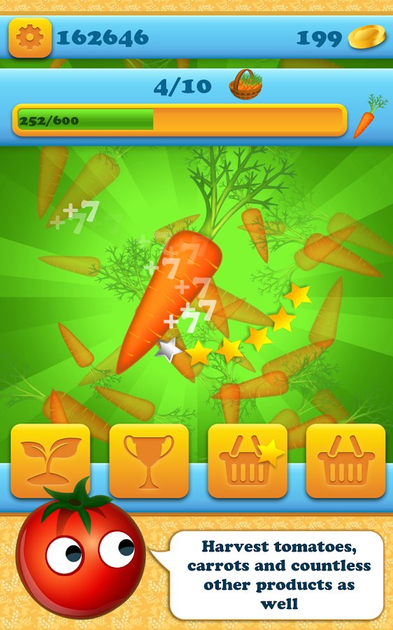 Farm Clicker – кликер игра в которой вам предстоит собирать горы урожая. В вашем телефоне накопилось большое количество урожая морковки, помидор и других сельскохозяйственных культур который необходимо собрать в специальные корзины и отвести клиентам. Собирайте как можно больше урожая кликая на экран телефона, и получая за это игровую валюту и бесценный опыт. Открывайте для себя новые овощи и поля для сбора урожая, а также приобретайте сельскохозяйственную технику с невероятной мощностью для более быстрого сбора урожая. В этой игре вы сами сможете выбирать сколькими пальцами мы захотите играть одним или несколькими одновременно.