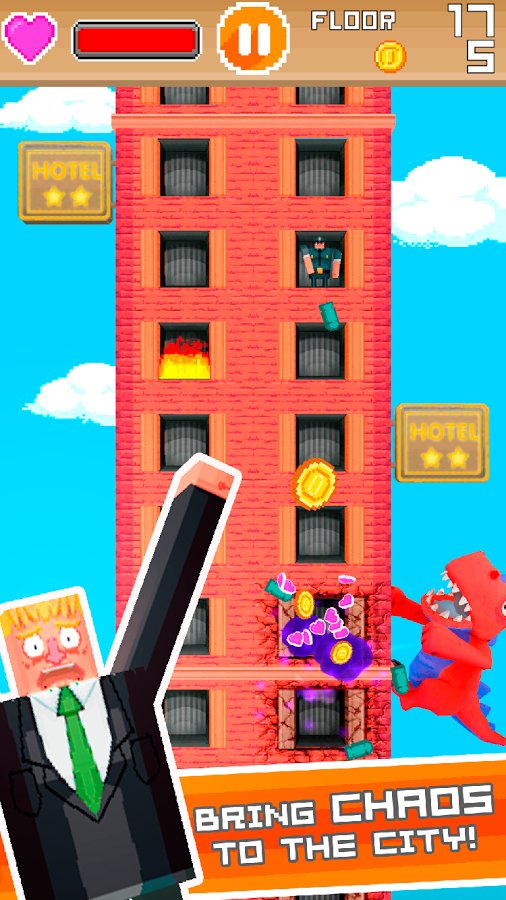 Super Monster Mayhem: Rampage – классическая аркада в которой вы будете играть роль ужасного монстра. Огромный монстр напал на город, громит его и пожирает всех людей. И этот монстр вы! Управляйте неуклюжим монстром и старайтесь залезть на самый верх высотного здания, поедая по пути невинных людей и стараясь уклониться от надоедливых пуль полицейских. На вашем нелегком пути вас будут также подстерегать взрывы, огонь и другие непростые препятствия которые необходимо обойти, чтобы не погибнуть. Обуздайте свою ярость и направьте ее на достижения лучших результатов в этой игре и попадания в таблицу лидеров.