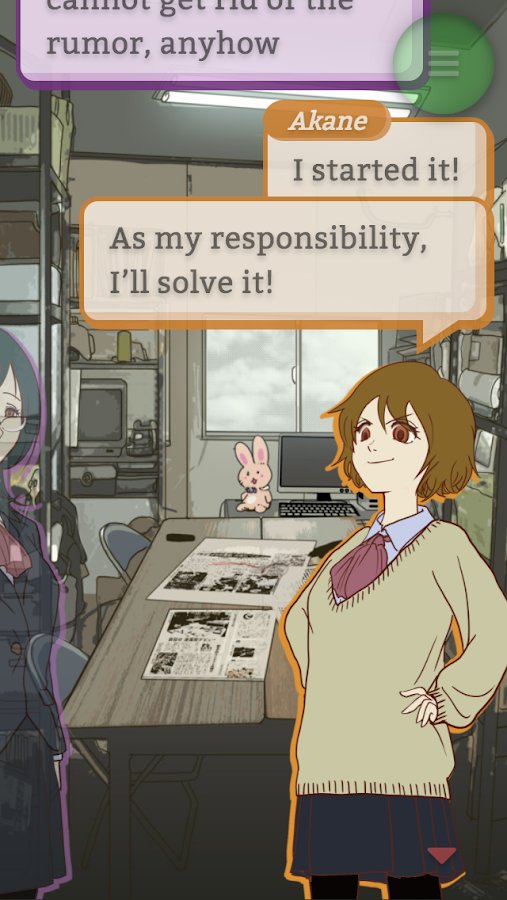 Mysterious and Forum 7 Rumors [Visual Novel] – an exciting visual novel on Android, created specifically for smartphone users. This novel is filled with love, youth, school, and chat rooms. In this fascinating history you will learn about the secret forum leader, which is a newspaper club at my old school. Posted on this forum the rumors turn into reality the unknown and mysterious way. Meet three members of the newspaper club and unravel all its mysteries.