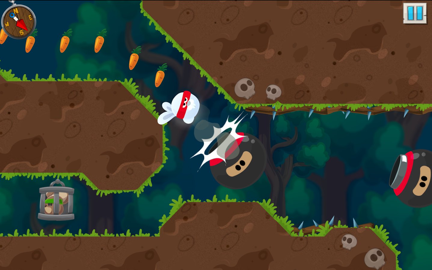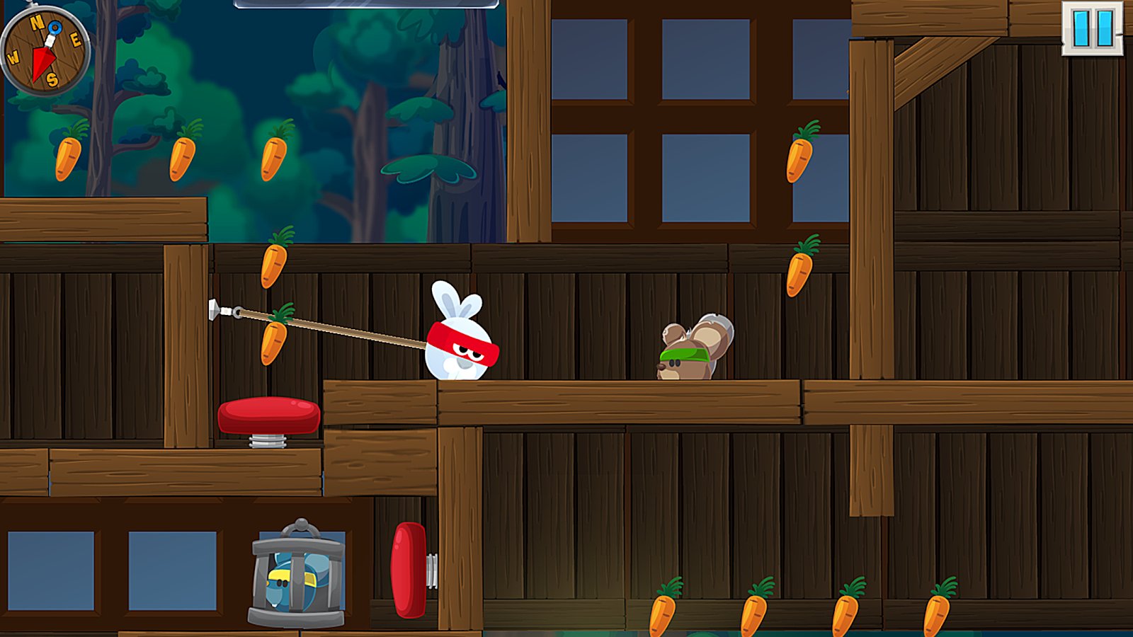 Rabbit Samurai - rope swing hero – control a funny Bunny samurai and help him rescue the mice from captivity. In this game you control a rabbit, who uses the rope like a spider web to move through the levels. Move as quickly as possible and try to do everything possible to avoid being caught by the enemies and collect as many carrots as possible along the way. Save all the mice from the cage and become for them a great hero. Collect all carrots on the level and find the hidden crystals that help to break down the doors of the cells.