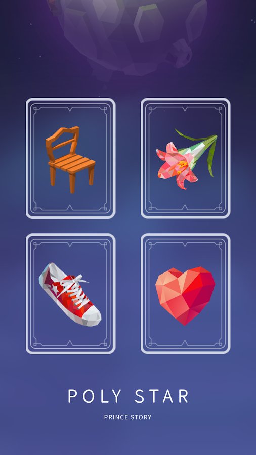 Poly Star : Prince story – 3D-poly-puzzle game for Android where you will travel to planets and listen to tales of the little Prince. One night, your ship has crash-landed in the desert and you on the way met a boy who began to tell about his journey. Listen to the boy stories about the many stars that are visible in the night sky. Play this game and train your brain rotating three-dimensional puzzle correctly selecting and matching fragments to obtain the image. Complete all the levels and collect all the pictures to get a beautiful book with pictures. Travel to distant planets and create your own.