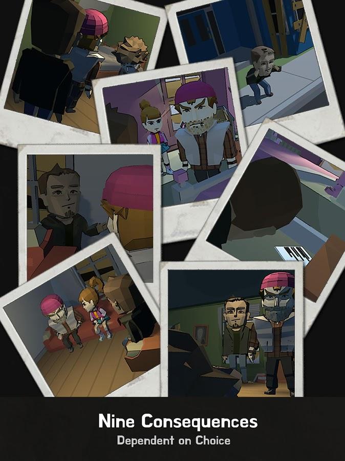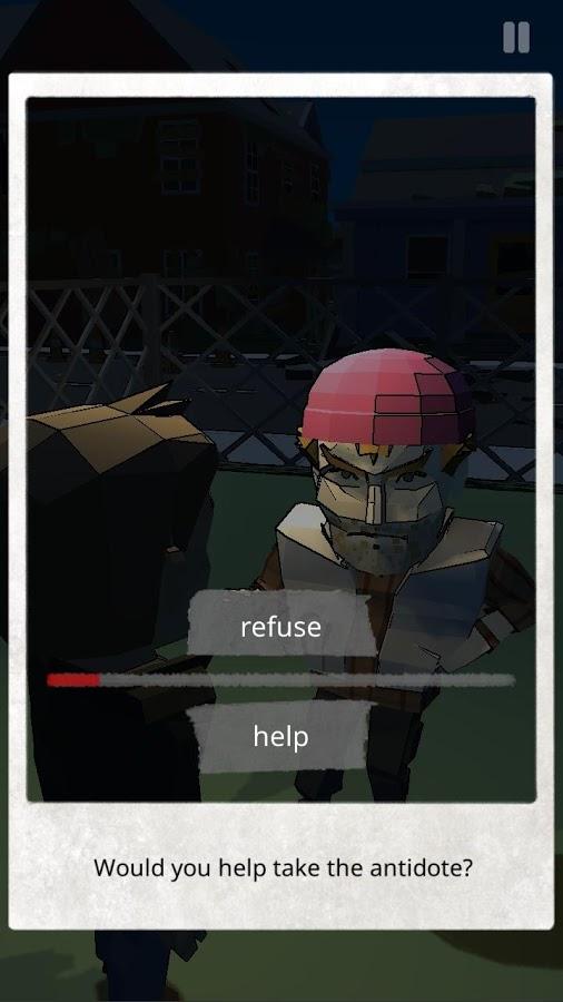 Two Ways is a game in the genre of interactive movie where you have to choose difficult moral decisions. In this direction was made by many different games, and this was very good. In the story in the world the epidemic virus that turns people into zombies. The number of drugs and antibiotics is limited and hard to find. You play as uncle James who was ill little daughter. In front of you in the game posed a complex moral choices: whether to steal medicine from a neighbor? Or is it better to find a more legitimate method of its production? Every decision has its consequences. The game always puts the tough questions and you are thinking about whether to do in this case is a good choice. Pass all the tests that you prepared and find out 9 different endings with different fates of the main characters that you control.