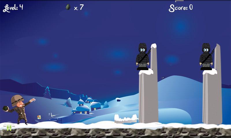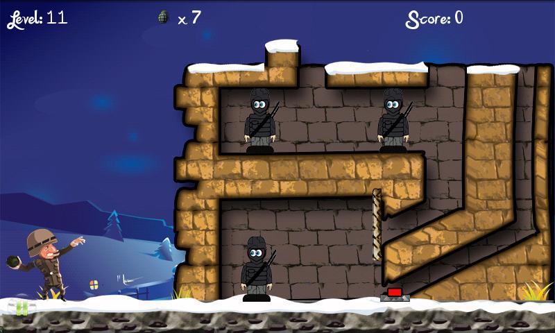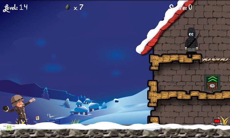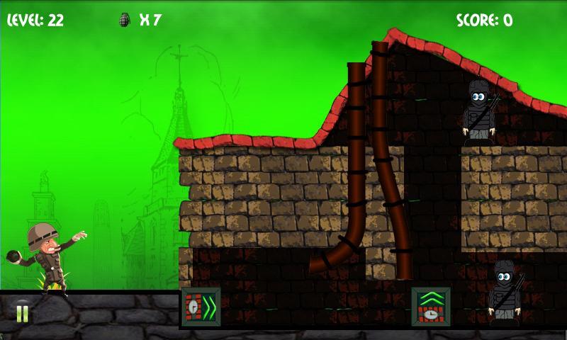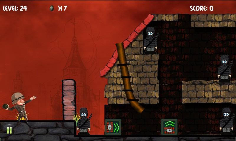 Grenadier – игра на андроид, целью которой является полное уничтожение всех вражеских солдат. Играем гренадером и кидаем гранаты в своих врагов, но не забывайте, что у вас ограниченное количество боеприпасов, так что будьте метким. 48 уровней веселья вам обеспечены, к тому же в игре присутствует глобальная таблица лидеров, так что вы можете соревноваться со своими друзьями.