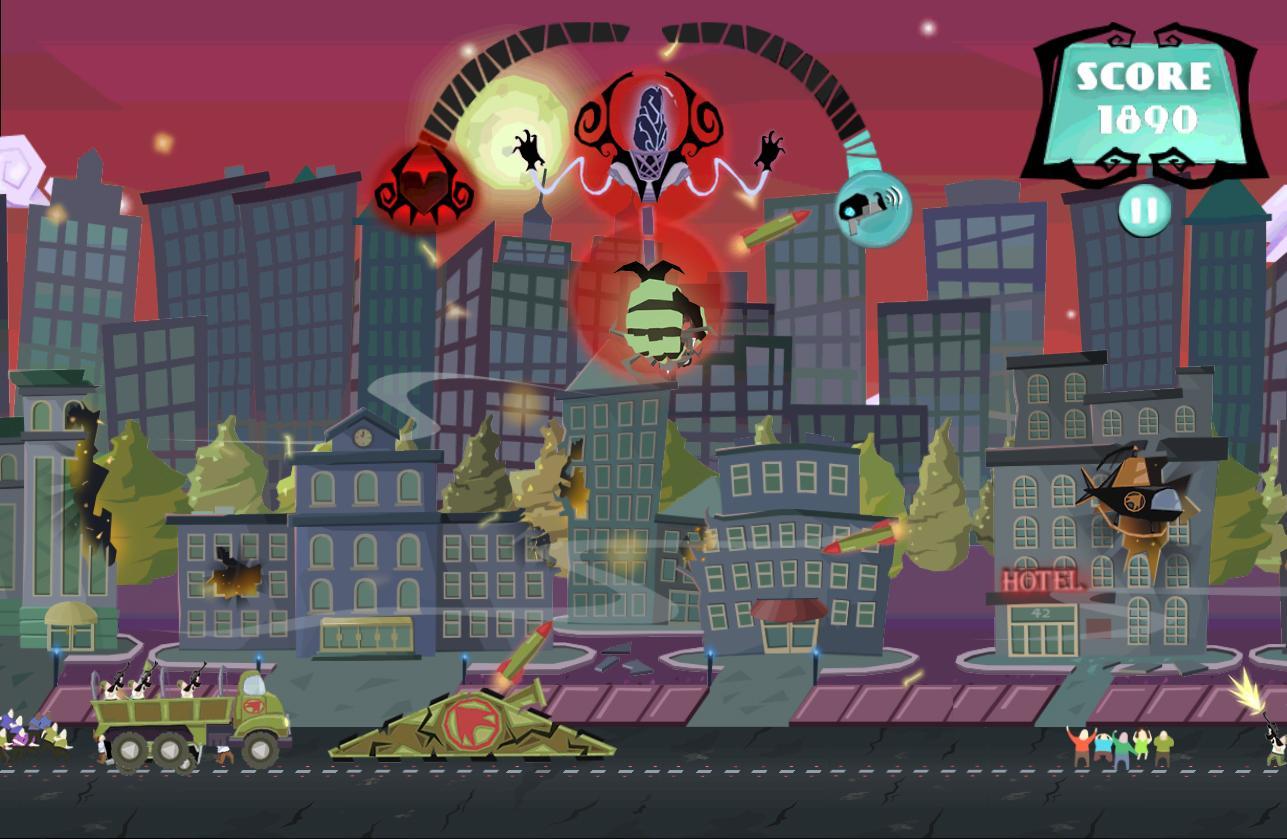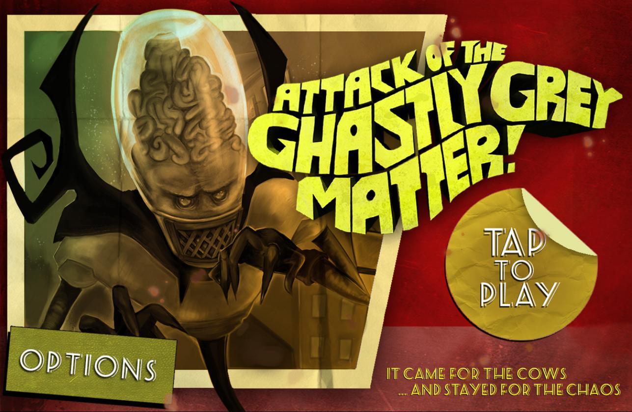 Attack of Ghastly Grey Matter - a game for Android, in which you ll play as an evil alien who arrived on planet Earth. Your task will be to evade from tanks and helicopters in this big fist to push groups of people. And abduct cows and humans for his experiments and fight your way through lots of levels in different environments.