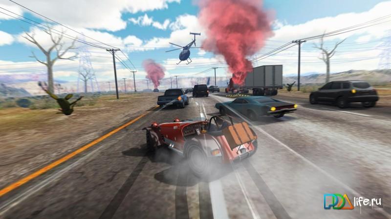 50 Miles – arcade racing on Android where you will drive on numerous roads of America and Japan. Get behind the wheel of a fast car and drive through the busy city and country roads. Take control of your speed car and improve his performance in his garage. Start your journey right now and go through the track 21, each of which will delight you with different weather conditions and numerous landscapes. Along the way, collect gold coins and try for the minimum time to complete the track to get a reward in the form of a car and increase your level in the game. All the game features 28 cars, 4 bonus and these cars are hard to see on the screen of your phone.