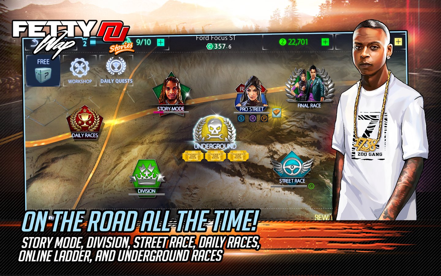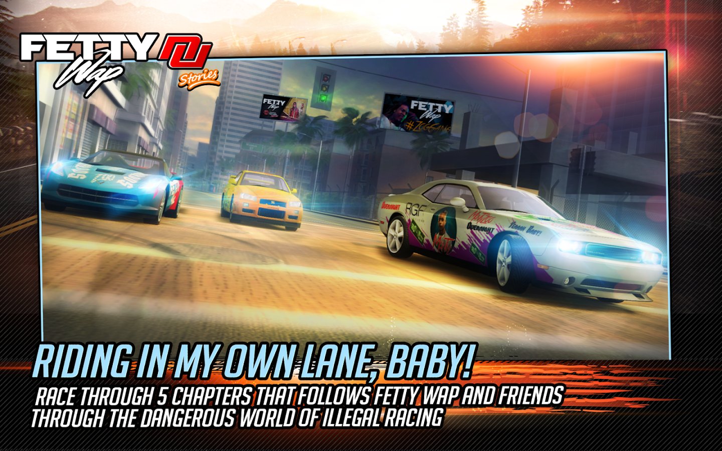 Fetty Wap Nitro Nation Stories - arcade racing from Creative Mobile, released in its history, far more than one hit in this direction. At this time the developers decided not only to add full story, but to build it around a popular Western artist Fetty Wap. The storyline develops around a popular rapper and his team, which participates in street racing. According to the classics of the genre and napersnogo entourage you get a huge selection of expensive cars, Alfa Romeo, BMW, Cadillac, Chevrolet, Chrysler, Dodge, Ford, Honda, Infiniti, Jaguar, Mazda, Nissan, VW and SSC, this is not a complete list of them. Fetty Wap Nitro Nation Stories provides the opportunity to participate in various game modes such as Story , Division , Street racing , Daily races , power rating and Underground racing , so everyone can find something interesting for yourself. Excellent graphics and well-chosen soundtrack in the style of the General atmosphere of the game just completes the overall picture.