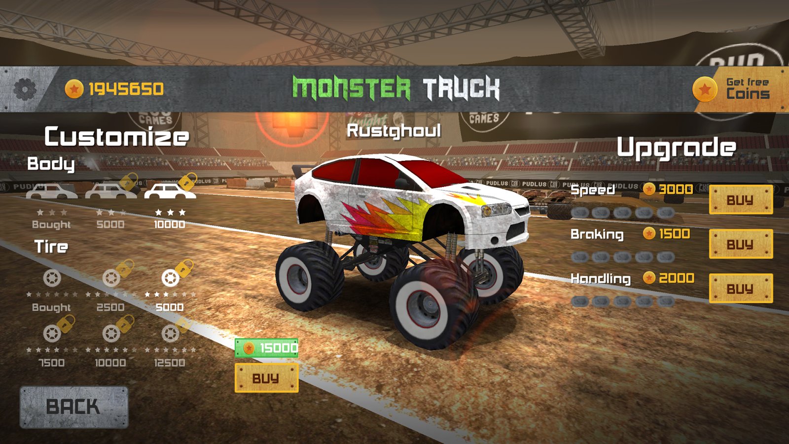 Monster Truck Race is a driving racing on improvised tracks on SUVs with large wheels. Ground hearse, different obstacles and other dangerous participants waiting for you in the arena. All the action takes place in the covered area with the audience, so we work for the public and trying to show all the tricks that were hidden up your sleeve. Once we get to the finish line, we have to prepare the car for the next race, for this it is necessary to upgrade your car or buy new, more powerful.
