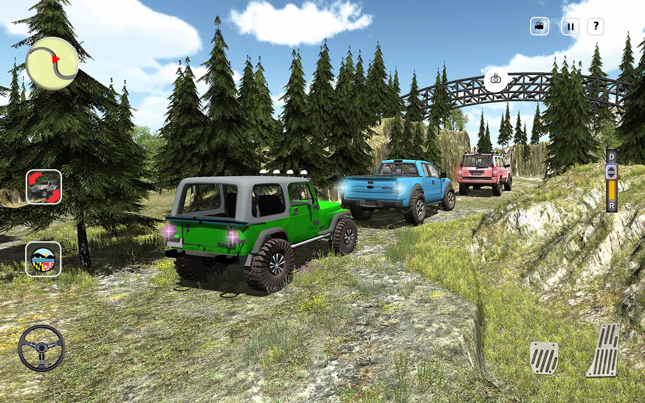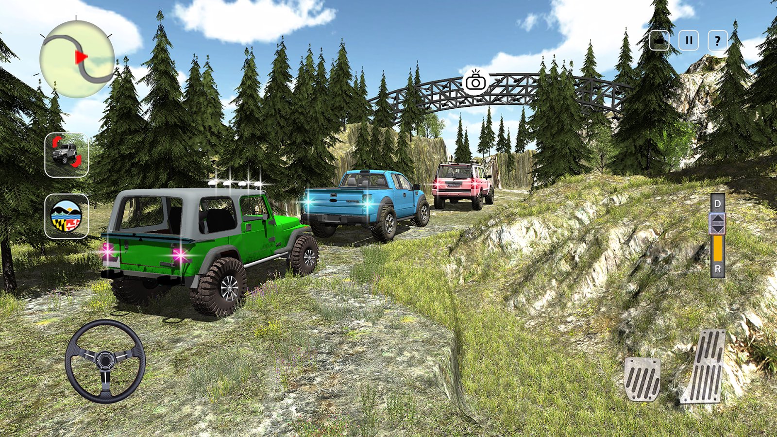 4X4 Mountain Hill Offroad Jeep simulator for Android, with easy control and realistic physics. In this game you sit behind the wheel of a powerful SUV and spend it on winding roads, mountainous terrain. Get ready for extreme driving and to overcome the numerous hurdles and obstacles lying on the road. Drive your car forward and climb steep peaks, drive through deep rivers and rubble of logs trying to get to the finish line. Be extremely careful and cautious to avoid falling into the pit and not to crash the car on the road. Buy new cars and test them in practice. The game will delight you with great scenery, incredible mountain peaks and scenic forests.