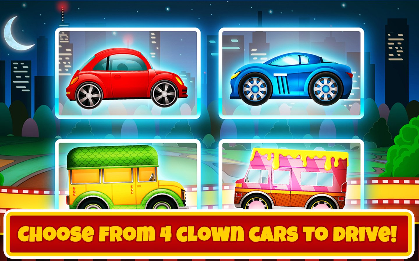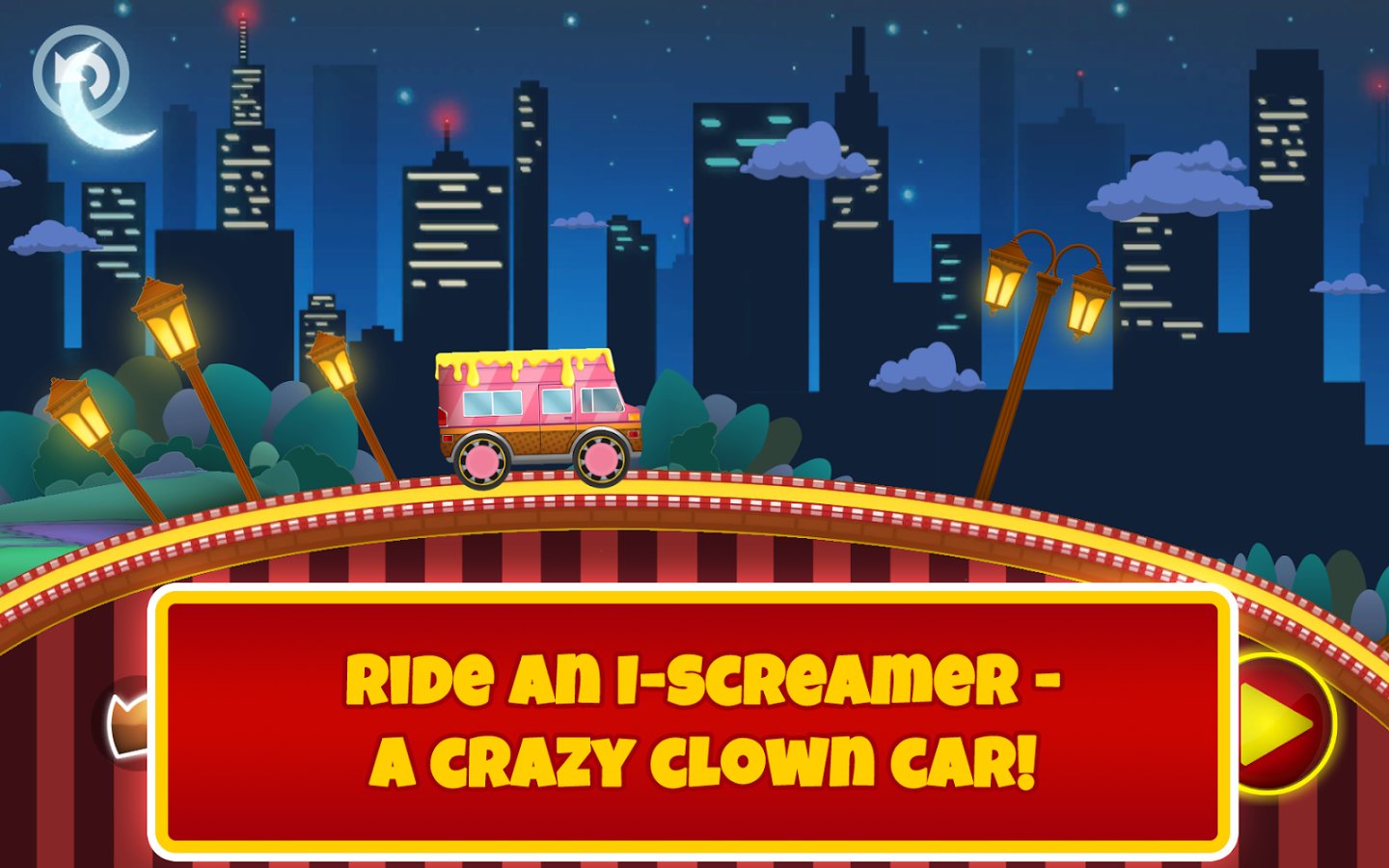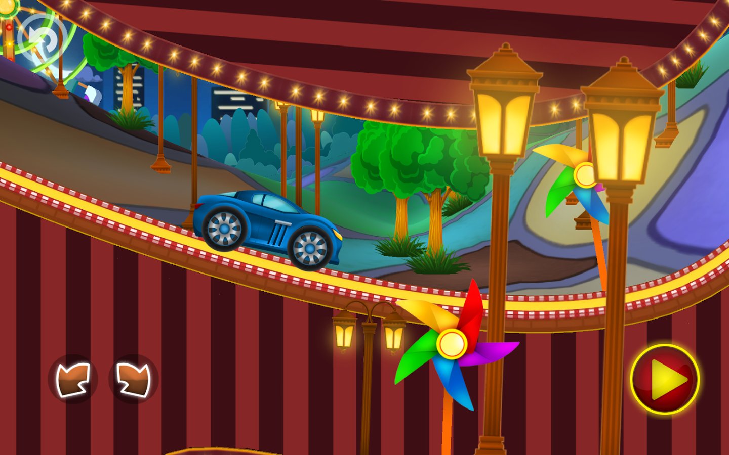 Magic Circus Festival – race for Android, for locations of a huge circus and amusement Park. In this game you will take control of a small car and will hold it in different locations of the game, avoiding the path of all the obstacles of jumps, tunnels, booths, carousels and clowns. Drive at high speed on a hilly terrain and overcome dangerous loop of the track. Rush forward past the operating rides, swings and roundabouts and doing all sorts of tricks and flips. Collect enough points and discover new colorful tracks and cars. The 4 cars and 12 different tracks.