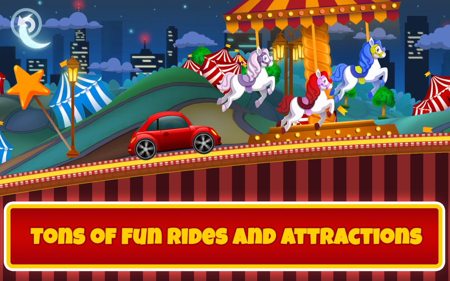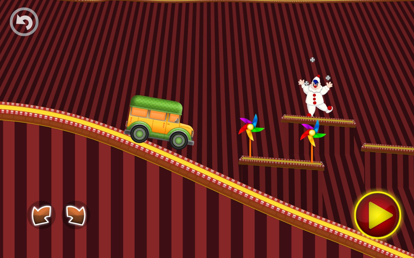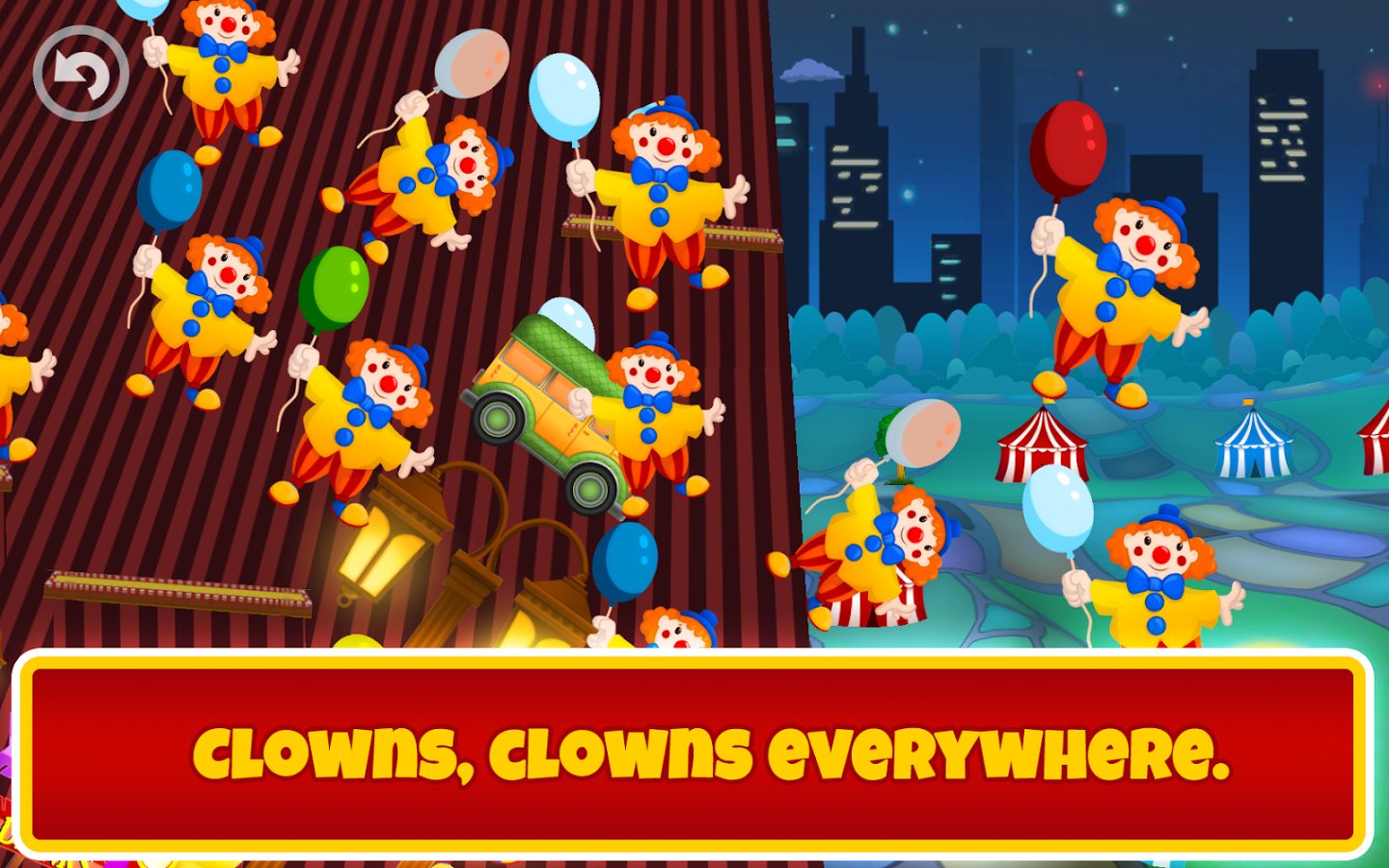 Magic Circus Festival – race for Android, for locations of a huge circus and amusement Park. In this game you will take control of a small car and will hold it in different locations of the game, avoiding the path of all the obstacles of jumps, tunnels, booths, carousels and clowns. Drive at high speed on a hilly terrain and overcome dangerous loop of the track. Rush forward past the operating rides, swings and roundabouts and doing all sorts of tricks and flips. Collect enough points and discover new colorful tracks and cars. The 4 cars and 12 different tracks.