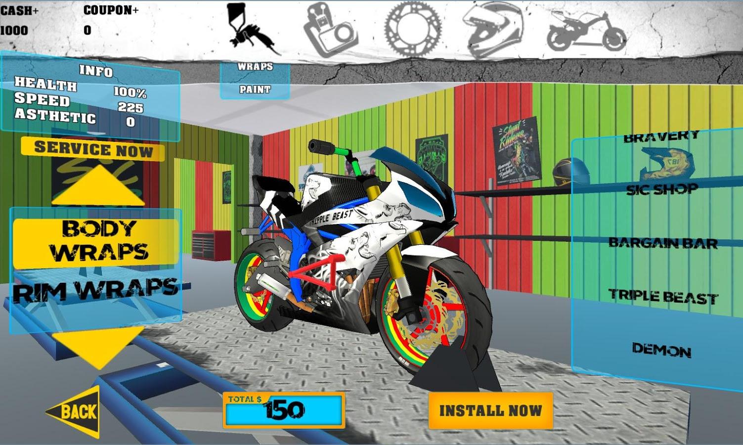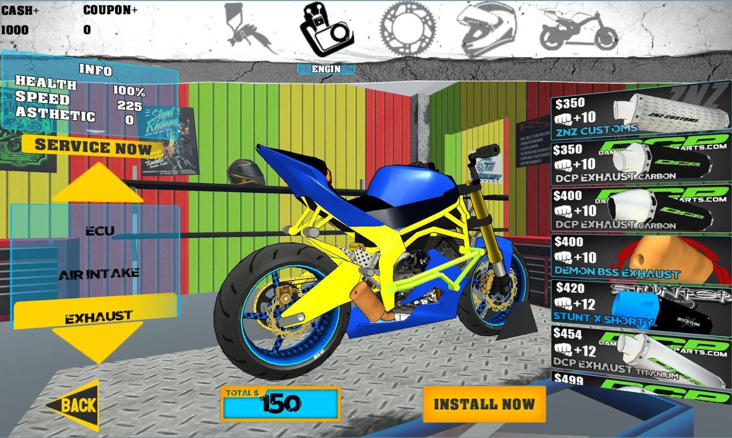 On a motorcycle you can not only fly in a straight line, but also to do crazy tricks on the highway Stunt bike freestyle. Get behind the wheel of a powerful bike and learn the amazing tricks, creating their own technology by combining multiple standard tricks. Specially take care for the timely updating of the motorcycle and its thorough revision under the current requirements, which will be facilitated hundreds of parts. Buy the best bike, tweak it beyond recognition and show the dizzying trick!