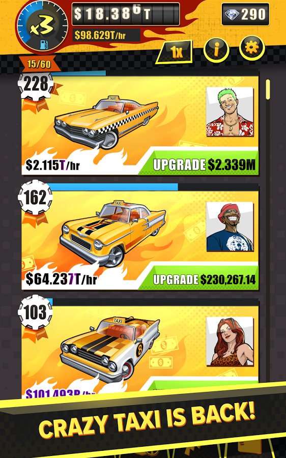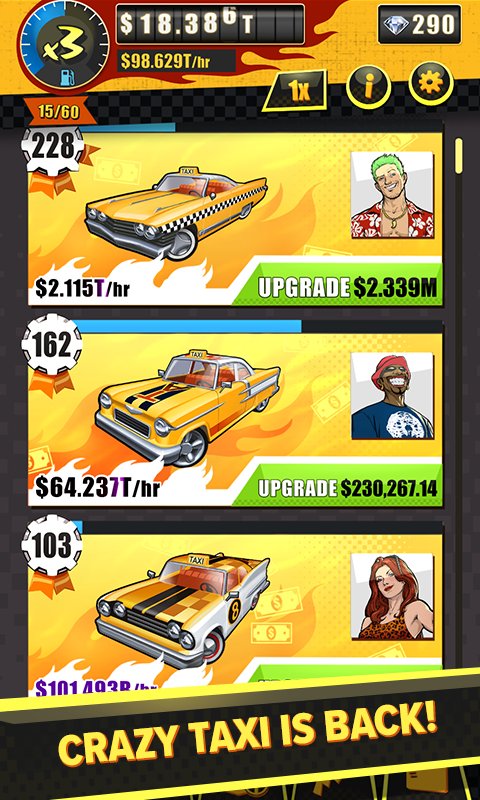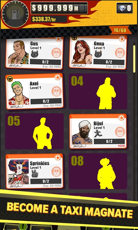 Crazy Taxi Gazillionaire - a game in which you will become the owner of the taxi fleet, and try to turn his company into the most sought-after in the city. However, it is worth remembering that the memory of old you hired just as crazy of drivers as it was in the past, which certainly influenced the style of doing business. And all the rest is in your hands, manage your company, hire drivers, buy cars and show everyone what you are capable of.