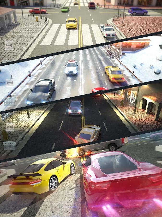 Traffic: Need For Risk & Crash – runner for Android, where you will drive on a busy highway in their cars. In this game you have to control your car and rush forward along the track ahead of the oncoming cars and avoiding obstacles on the way. Every race in this game will give you a certain amount of money that you can spend on buying a new car. In order to diversify this game use several game modes such as one-way traffic, two way, time trial and daily races. Play this game and enjoy a great drawing of all the parts of the car, good graphics and simple controls.