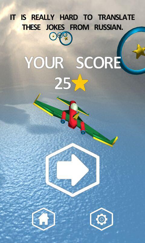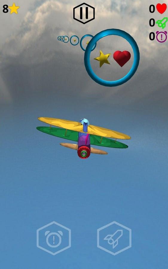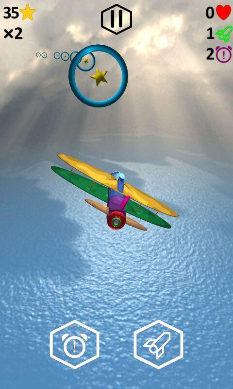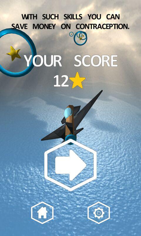 Wings & Rings – a fascinating arcade on Android where you take control of a huge flying mechanisms. In this game you will surf the vast expanses of the sky pass fascinating missions. Fly through frozen sky in the ring and earn points thereby. Along the way, collect stars, and life, and don t forget to read the funny remarks which are designed to make you laugh. As the game progresses, discover new planes and missiles and enjoy nice graphics. Have fun spending your free time playing this game and compete with friends for best results.