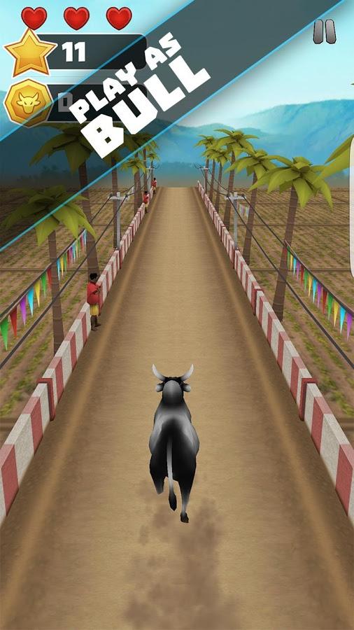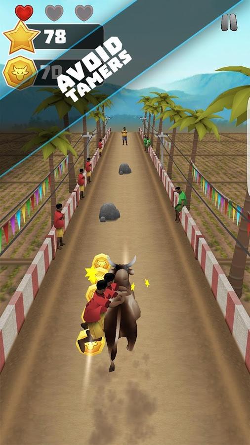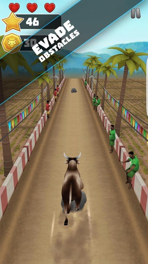 Jallikattu Run – runner for Android, where you take control of a huge bull and spend it on many tracks. Lead the bull along a narrow track where you are the audience and try to avoid collisions with people who will be waiting to jump you over the hump. The task of people is that they need to play on the hump of a bull and set your record. Run through the many worlds and avoid collisions with people and other obstacles. Play this game and achieve excellent results, climbing higher in the leaderboard.