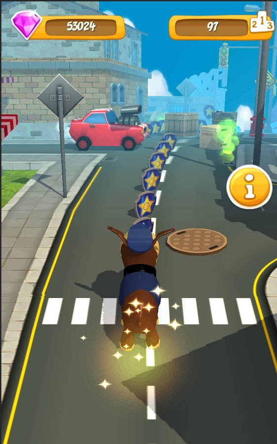 Paw Puppy Patrol Sprint – a fascinating arcade on Android where you will help the police chase the puppy to perform the mission. This game is designed for children, where they, along with the puppy will explore a huge city and you need to collect police badges. Run, jump and avoid enemies and obstacles in his way. Collect all the tokens in the town and get the rewards as the super abilities that help your hero to catch as many bandits as possible. Patrol the streets of his hometown and do not allow criminals to walk on them. Play this game and enjoy great graphics and simple control.