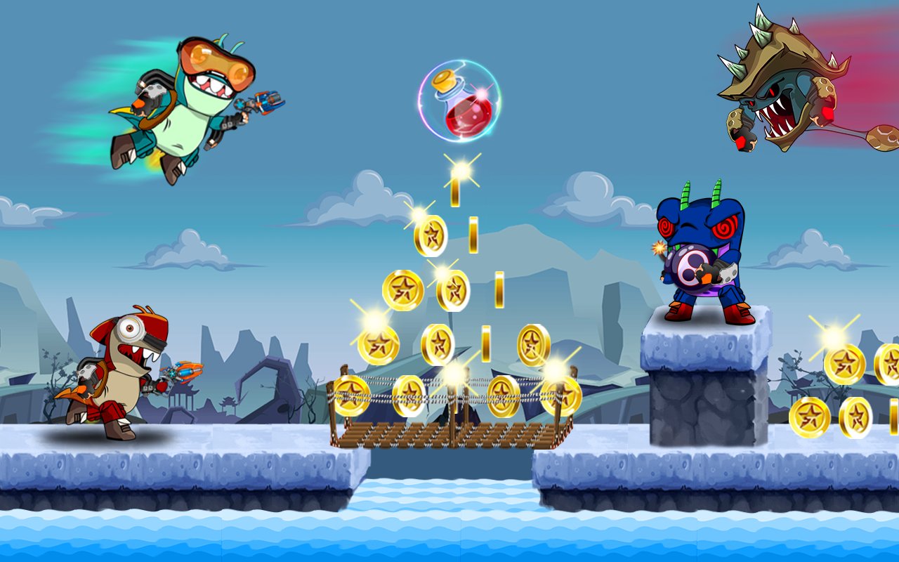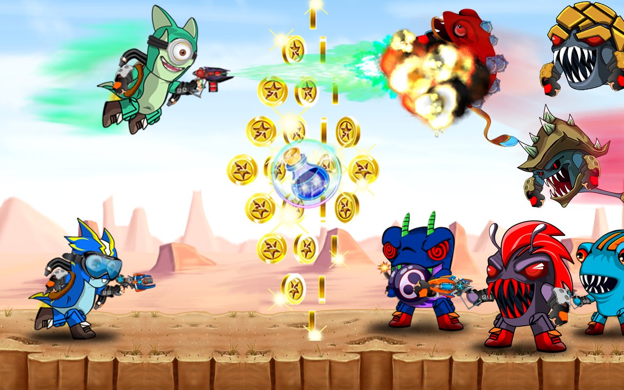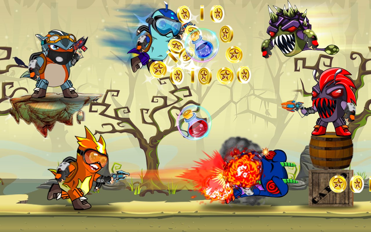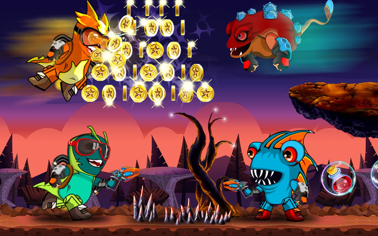 Slugs Jetpack Fight World – take control of the brave heroes who decided to protect their land from monsters. Monsters are attacking from all sides so take your Blaster and destroy them making it impossible to capture the chance to win. Navigate through the beautiful and varied worlds and do not forget to collect coins that will allow you to open all characters in the game. Also on your way you will meet a large number of bonuses and power-UPS, use them and make your hero invincible. Enjoy your free time in this game and have fun with exciting fights and improvements for the hero.