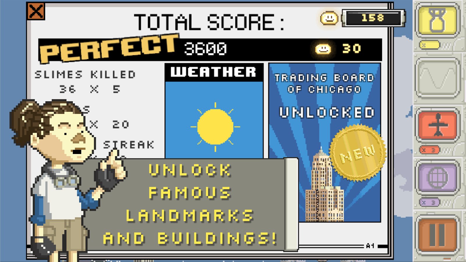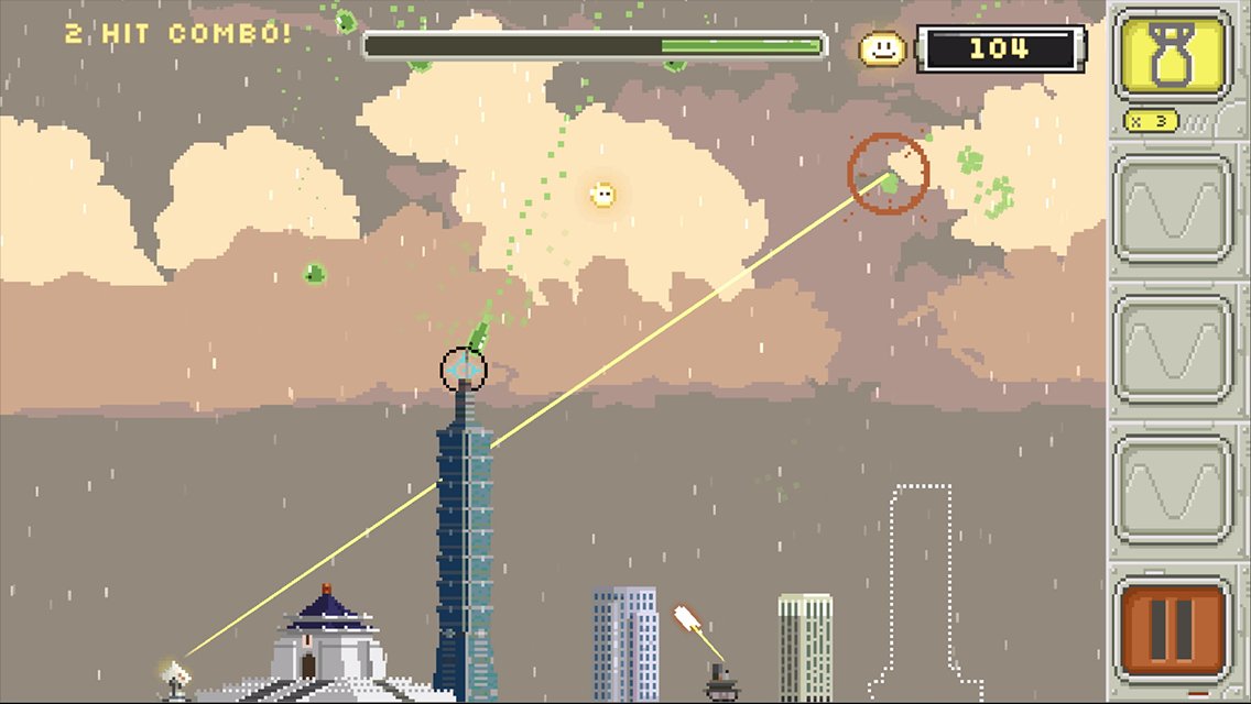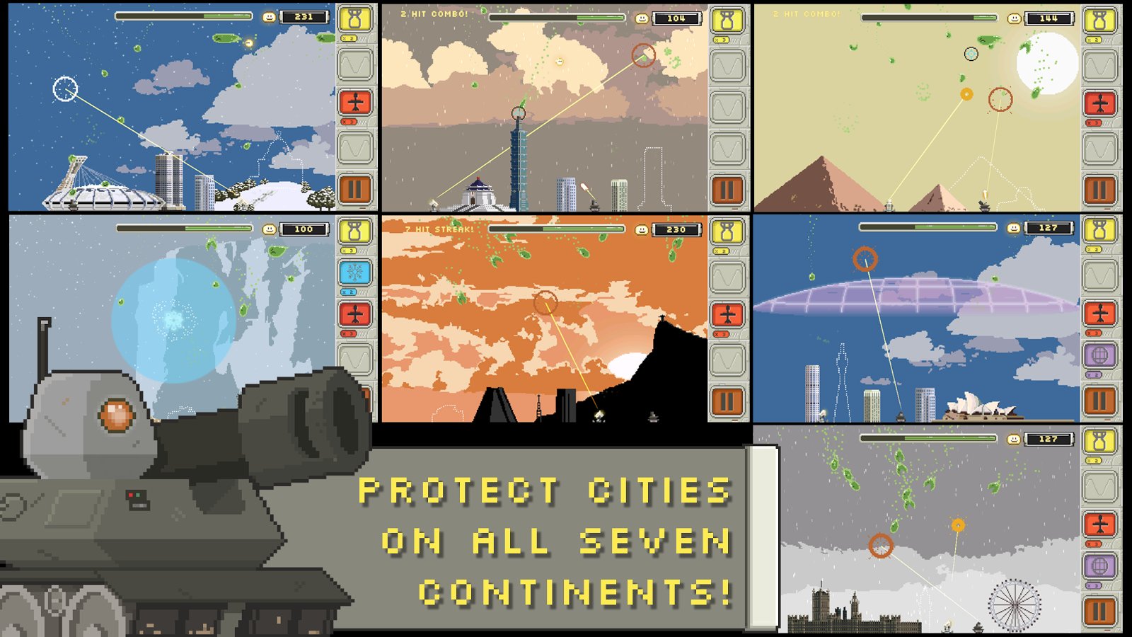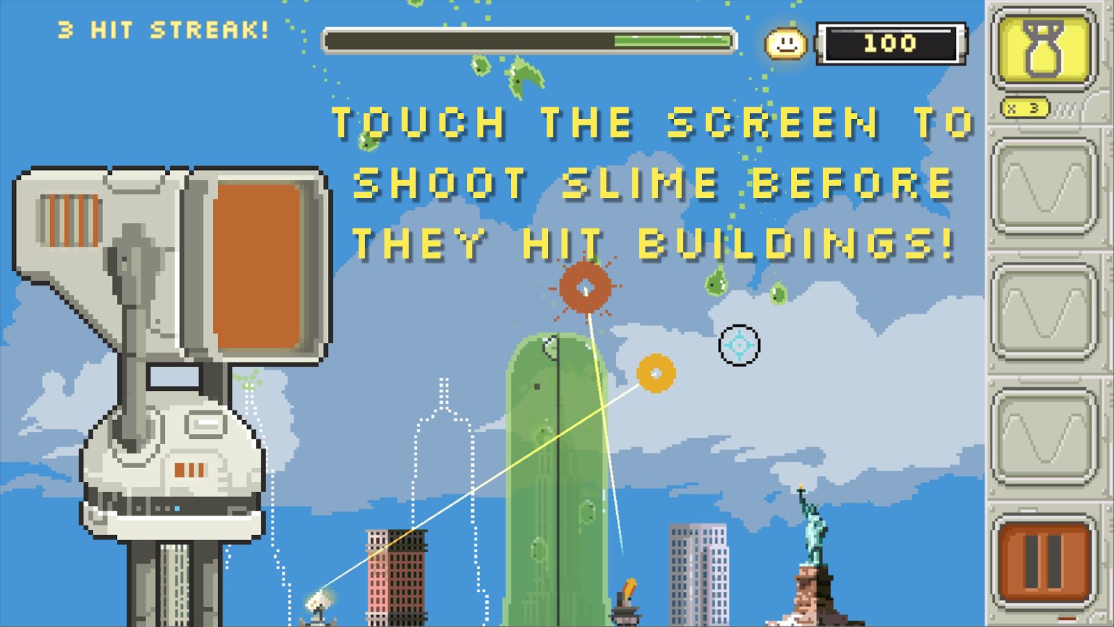 Slime-ballistic Mr. Missile - a Fun pixel game where you have to protect the city from evil climov which attacked the earth. In an instant fell to the ground enormous swarms of green climov, and they began to eat everything, houses, people, and more destroying everything. However, a group of scientists were able to counter this with noveishih development of weapons, you managed to repel this attack. And now your output, you have to shoot their guns, while traektoriyu calculated in advance, and guess where they will slime a few seconds.