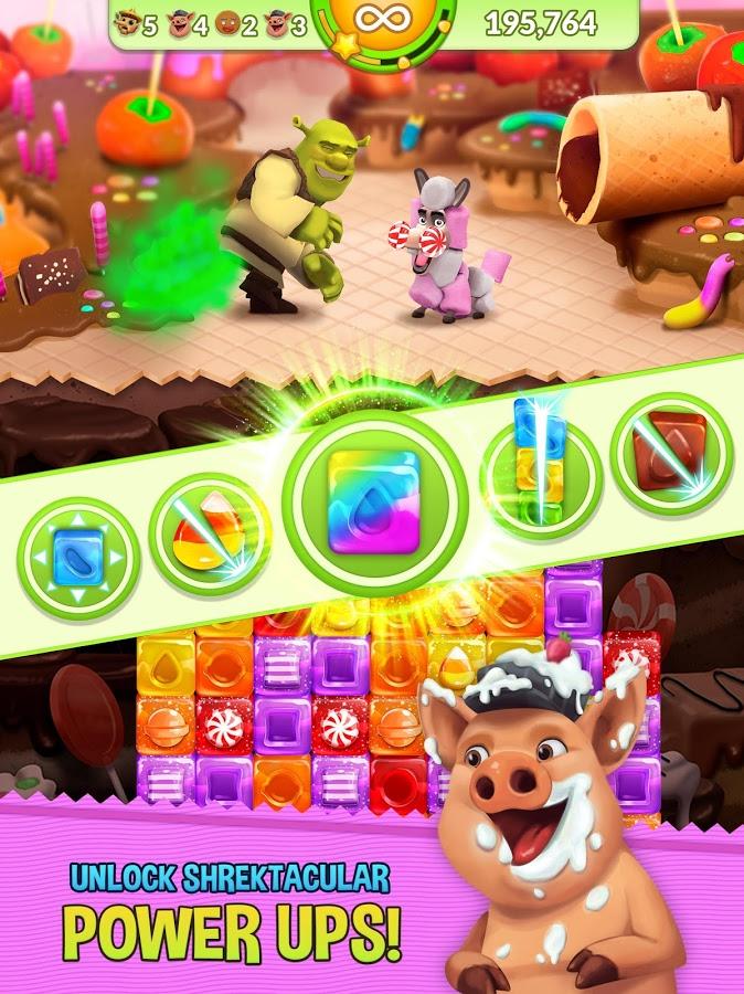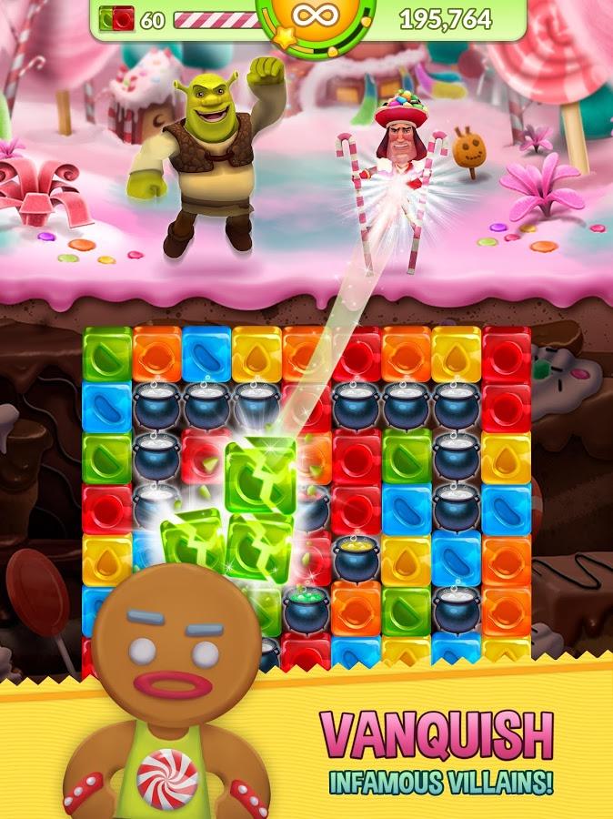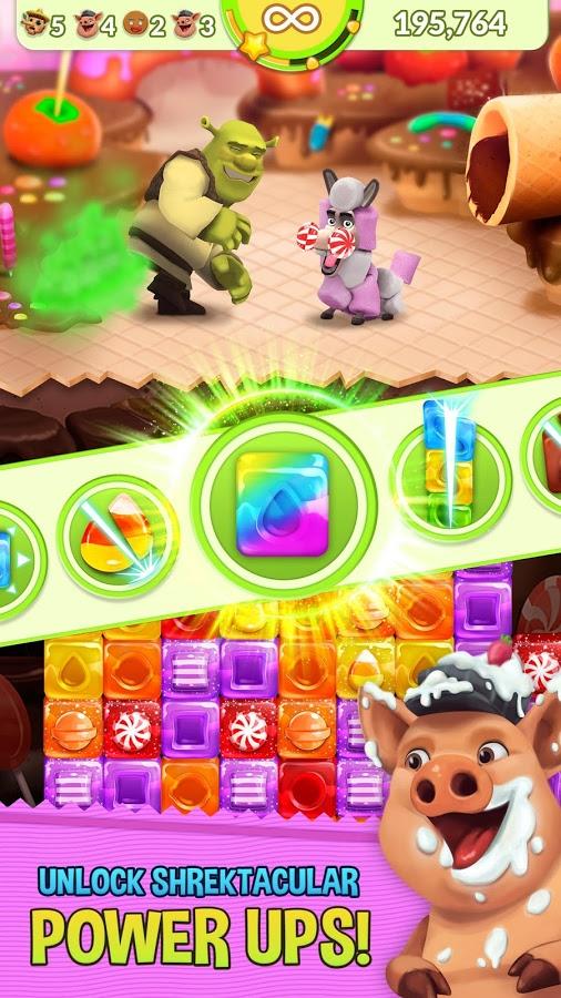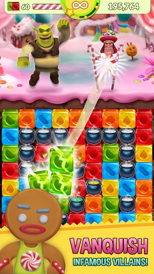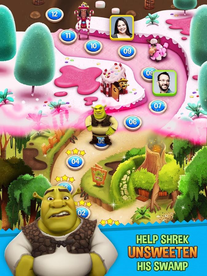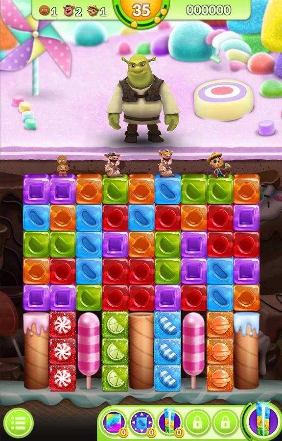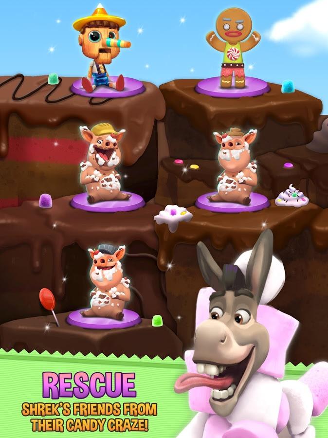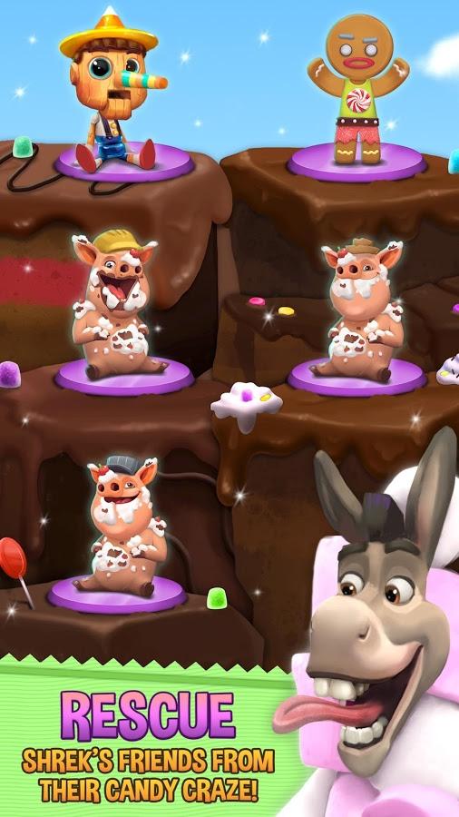 Game mechanics Shrek Sugar Fever built on a classic scheme, combine the same elements of three or more, thereby to save their friends and consuming sweets.