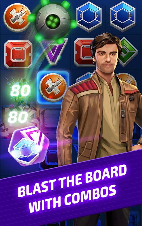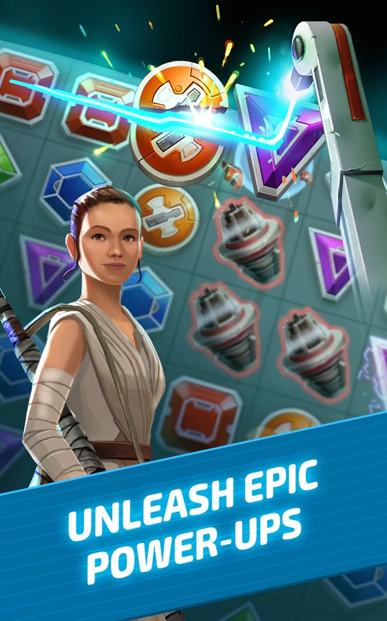Star Wars: Droids Puzzle – platform game for Android genre of three in a row, where you will meet again with the heroes of the famous Saga Star wars. In this game you will play the role known to all of the droid and collect the crystals in a row and thereby attempt to awaken the power to defeat the enemy droids. In this game you will travel through familiar locations and solve tricky puzzles and puzzles. In this game you will meet again with Ray, Finn, For Gameroom and other and join the fight with the first order. Make different combinations of crystals and destroy all obstacles on the way and use the numerous power-UPS as quickly as possible to clear the field and to perform all tasks.