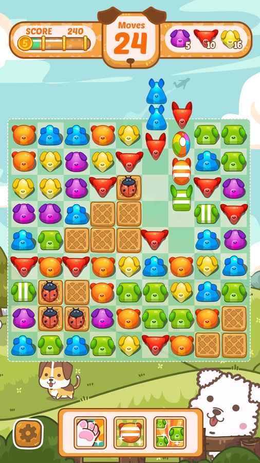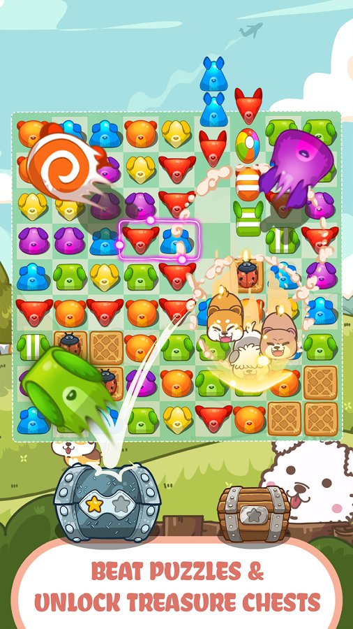 And so, as already mentioned Fancy Dogs - Puzzle & Puppies is an arcade of three in a row, but this time you have to combine and build not beads or berries, and dogs, and used images over 12 different breeds and each of them has its own peculiarities. It is also worth noting the existence of the plot and excellent graphics, and for performing different tasks you will receive bonuses and prizes. In the rest of the Fancy Dogs - Puzzle & Puppies is a classic representative of the genre.