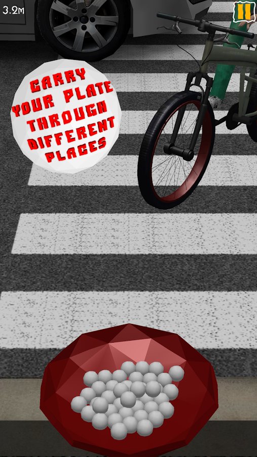 Plate – a fascinating arcade on Android, which will take place from the first person. In this game your main task will be to carry as far as possible a plate with multiple objects in it and not lose them along the way. Check on the fact of their excellent response and agility, carrying the plate and avoiding the many obstacles in his way. Earn stars by completing levels and discover new. Each new level in this game has its own secret, solve it and unlock new levels. Ahead you will find a lot of locations, new plates and obstacles.