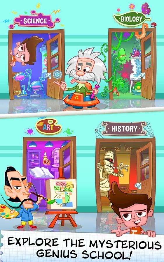 Cheating Tom 3 - Genius School – an exciting game for Android where you will help the boy to finish school for brilliant children. Our hero so famously learned to cheating on exams, that he was considered a genius and sent to a special school. In this school, strange things are happening, the evil scientist wants to take over the world, using the minds of gifted children. Your task is to prevent scientists to carry out their plans to deceive teachers, writing off the items and try to finish school. Masterfully moves from one learner to another and try to write off their tasks as quickly as possible. Ahead of you are 100 levels, 2 unique hero, 5 items, and many different characters.