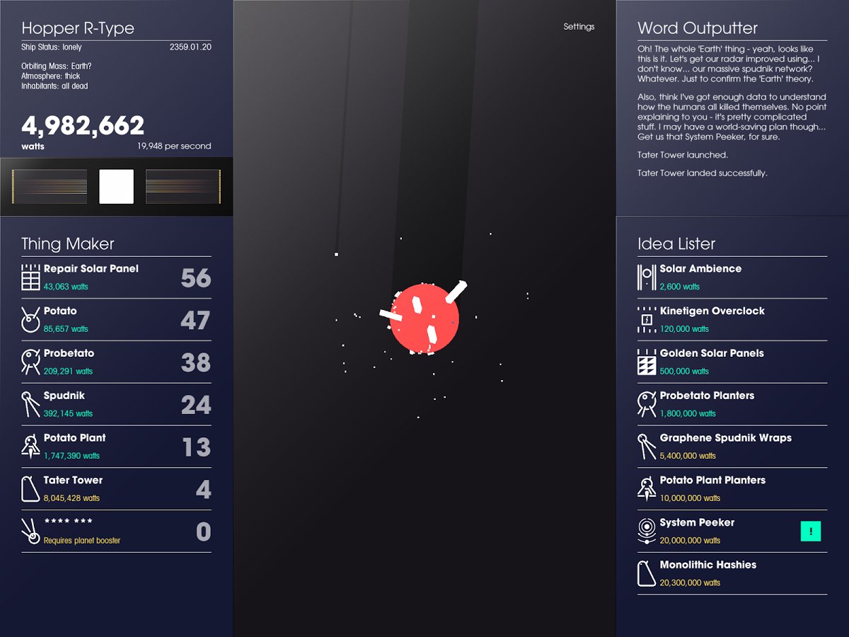 inherently SPACEPLAN is a habitual clicker but the atmosphere of science fiction makes the gameplay special charm and allows you to use in-game moments are very unusual for the genre solutions. In other words, we face a classic clicker, but with an unusual plot and gameplay, as well as with the support of the Russian language that will allow you to easily understand the intricate details of a fantastic story.