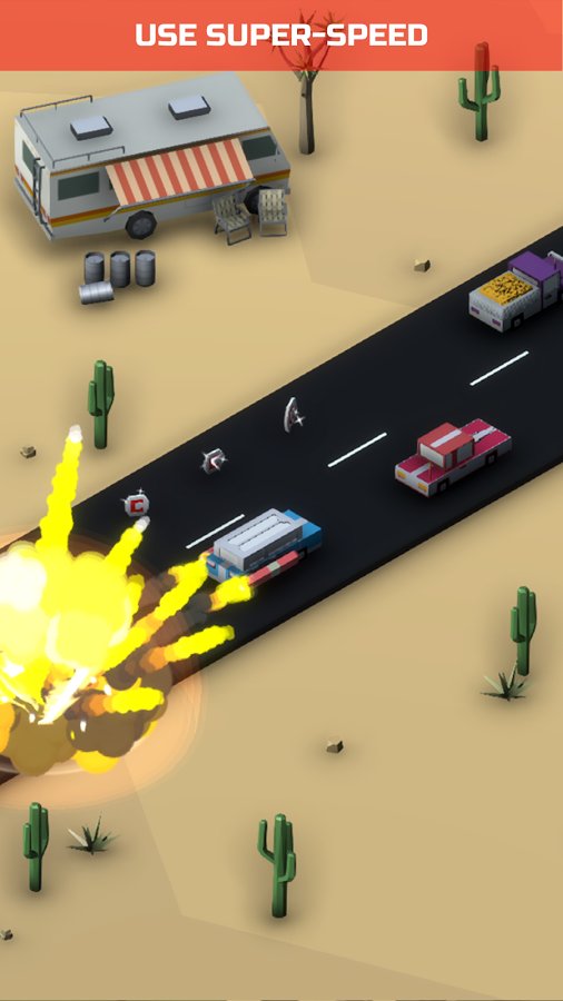Boom Road 3d drive and shoot – racing on Android where you will play the role of bad guy. In this game you sit behind the wheel of a car and will drive on a busy highway trying to evade the police. Shoot special missiles to blow up cars and police helicopters, and drive as close to other cars to earn as many points as possible for the risk. Try to survive as long as possible in this game and set your record. Unlock new cars, which in this game are over 30, and you can also paint them in different colors. On the way collect coins and unlock new opportunities.