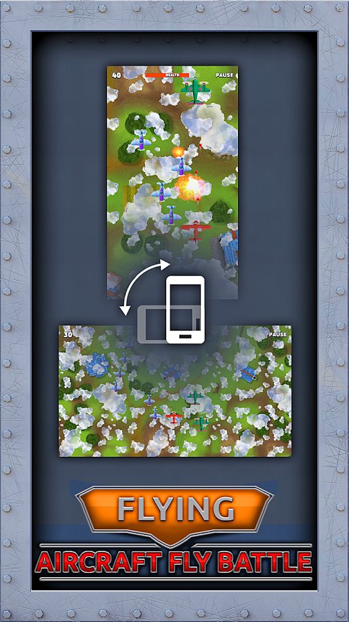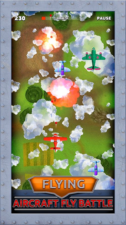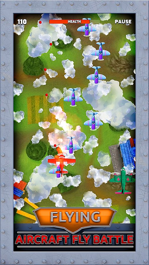 Flying. Aircraft Fly Battle – scrolling shooter for Android where you take control of a cartoon airplane and it will hold at all levels of the game. Accept your part in air battles and defeat the enemy planes, trying to get to the goal. At high speed doing incredible maneuvers and avoid all the obstacles in his way. Reach the cherished goal faster than your rivals and become the best in this game. Play this game at any free time and enjoy nice graphics, great soundtrack and a simple and intuitive control.
