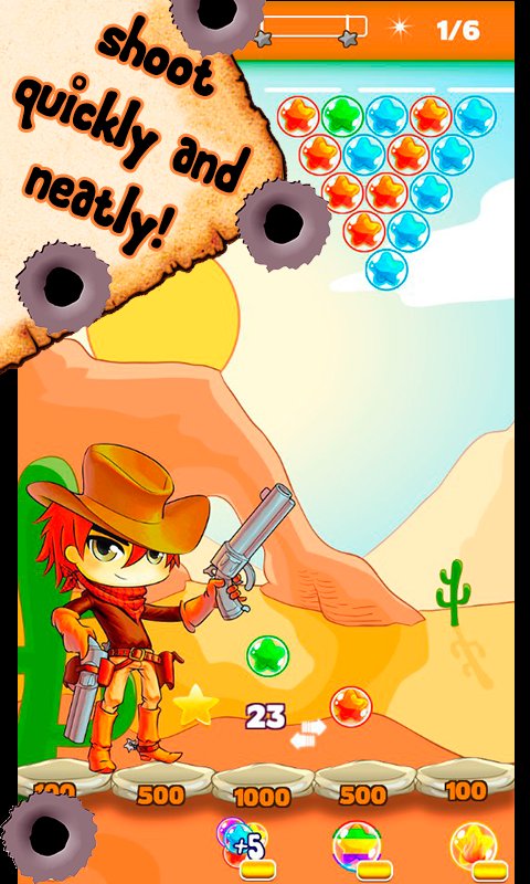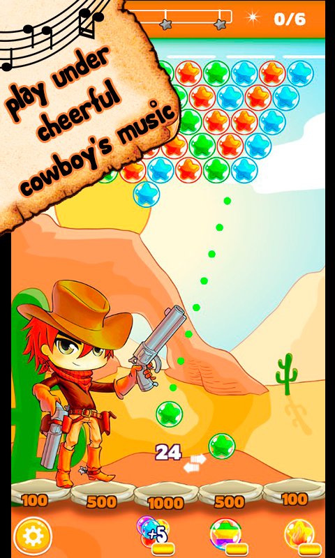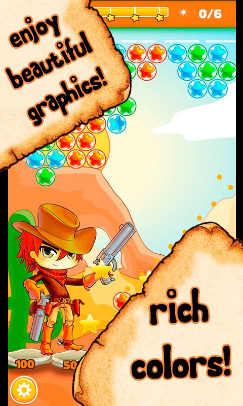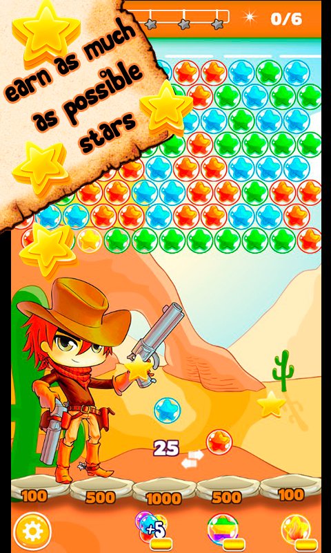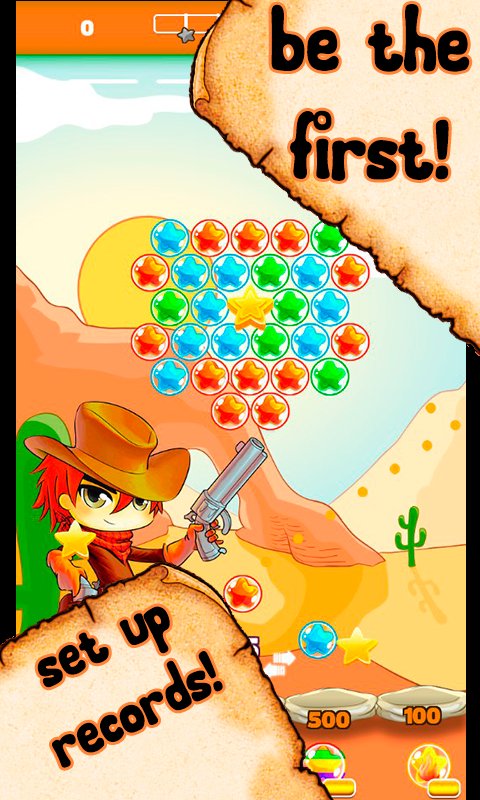 Cowboy Johnny Bubble Shooter – puzzle game for Android where you will go straight to Texas. Take control of a cowboy named johnny, and together with him pass all the levels of the game. In this game you will help the hero to shoot pistol balls and make rows. Shoot the group of them upstairs and blow them up. The game features two game modes: puzzle mode and the boss. In classic mode your task is to shoot balls without making mistakes, the second mode is more complicated you need to get a star, which is located in the center of the cluster of balls. Blast bubbles and collect enough points.
