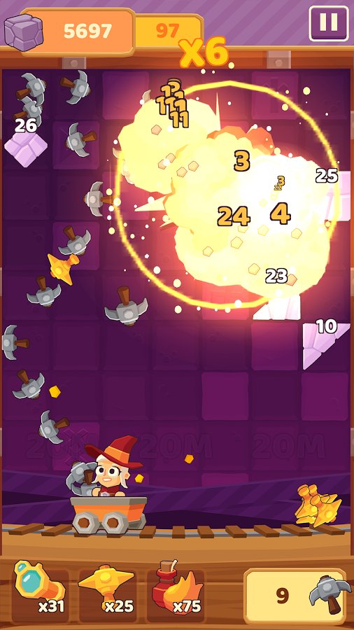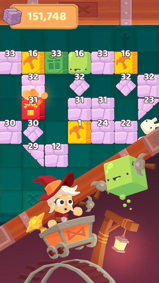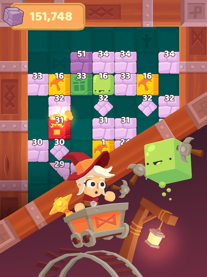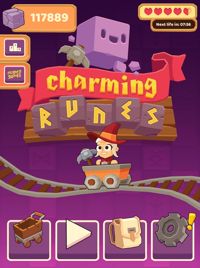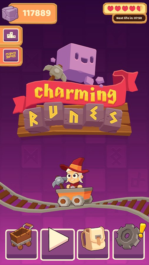 Charming Runes – a game on Android where you will descend into the mine and will produce valuable runes. In this game you will control the hero, who rides on the trolley and throws up a pickaxe, breaking stones and thereby extracting useful runes. Our hero will move slowly along the rails and at this point you need to accurately calculate the trajectory of the pickaxes, one blow to get all the bonuses. Consider the fact that kirk is going to bounce off the walls, stones and other objects, and destroy more enemies. Pass as many levels in this game and get great bonuses.