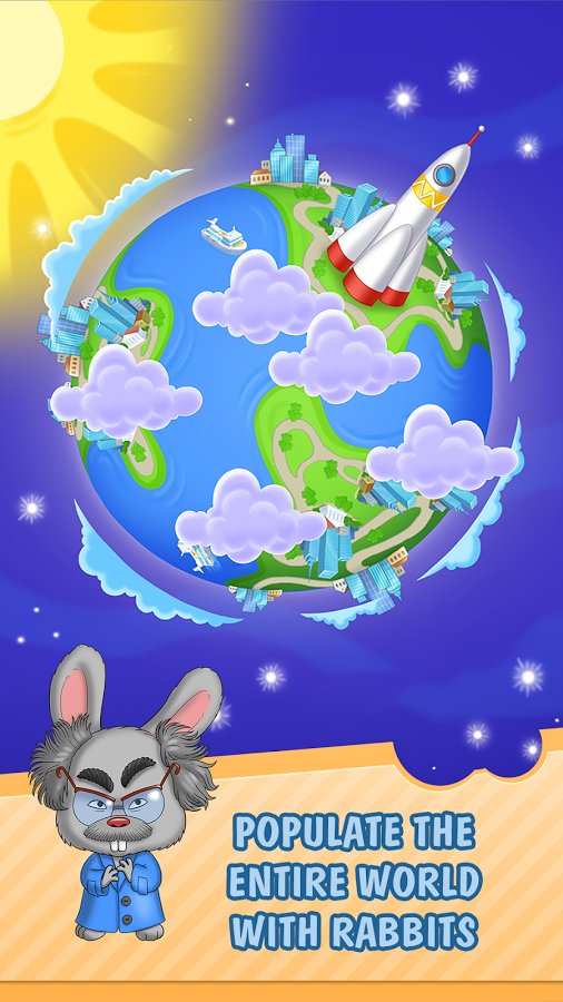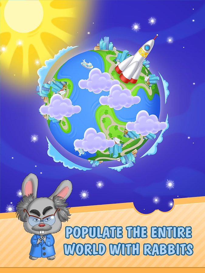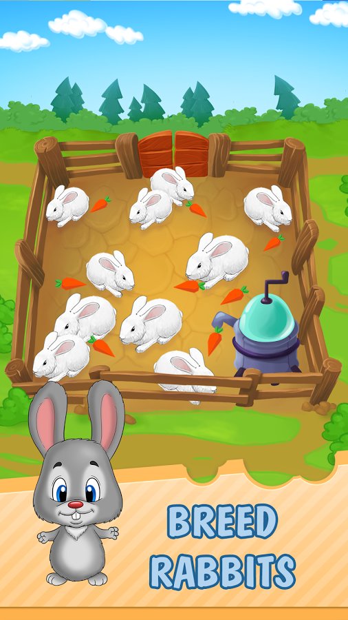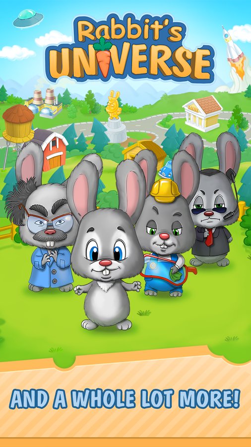 Rabbit s Universe:farm clicker on Android, where you will raise rabbits. In this game your main task will be to increase the population of rabbits to epic proportions, so that they filled the whole farm, village, city and even the planet. Tap the screen of your phone or tablet as often as possible and raise rabbits and feed them a carrot. Drop a carrot on the field and collect a new crop. Create new varieties of carrots and influence the evolution of rabbits. Increase the harvest of carrots and catch flying plates of aliens who want to steal your rabbits.