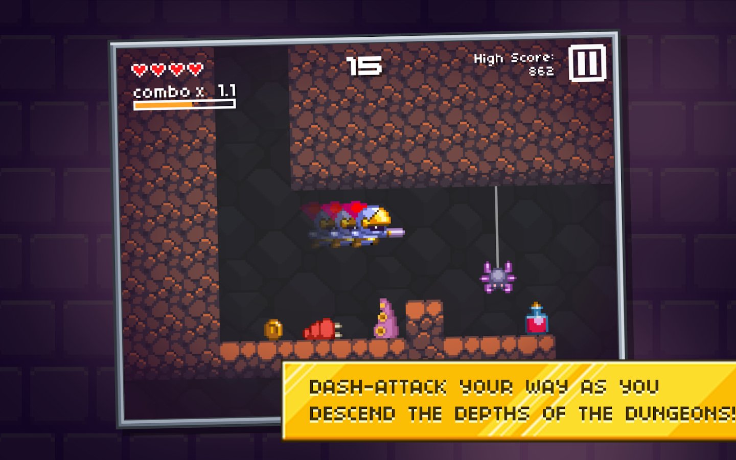 Studio developer Noodlecake well-known mobile platforms thanks to the great arcade games including hits such as Random Heroes, Zombie Road Trip and Alto s Adventure, and that s not all. And now, a few days Noodlecake has pleased us with his new project under the name Journey Below which is a mix between an auto-runner and a platformer, and the storyline is twisted around the brave knight who went down into the cave to destroy the monster and save the world.