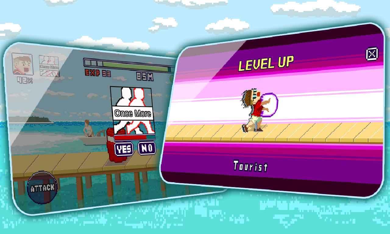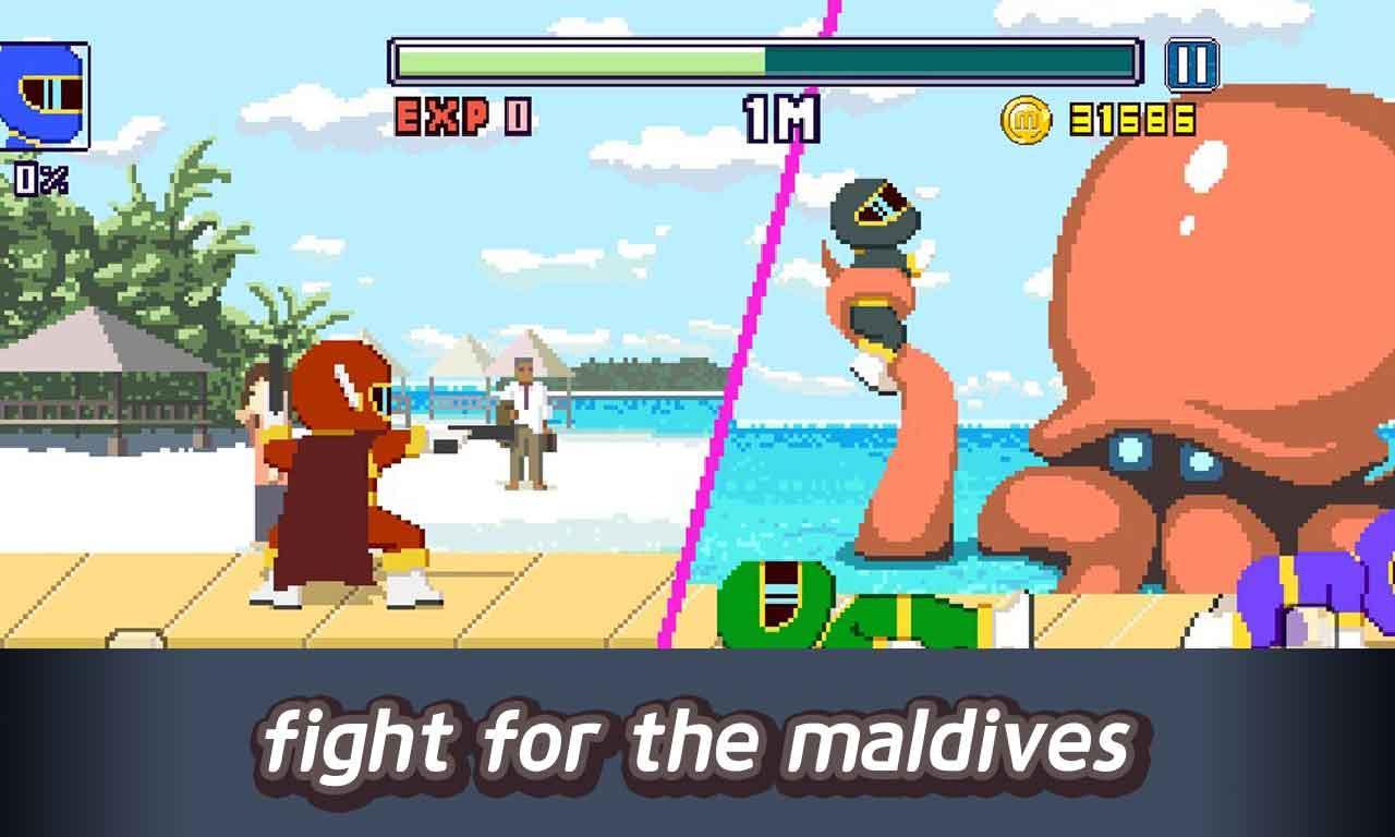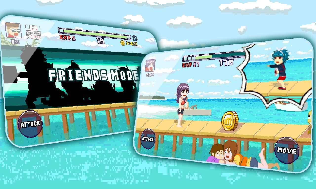Maldives Friends : Pixel Flappy Fighter – control a funny character who runs on the beach and destroys all obstacles in his way. This game will take you on the Sunny Maldives, where you control the main character, which should pass not an easy way. On the way our girl will face a lot of barriers, obstacles and enemies. By clicking on the right part of the screen your character will move forward, and when you click on the left part the character will kick and shove enemies. Collect coins and improve your character by buying him costumes and accessories.