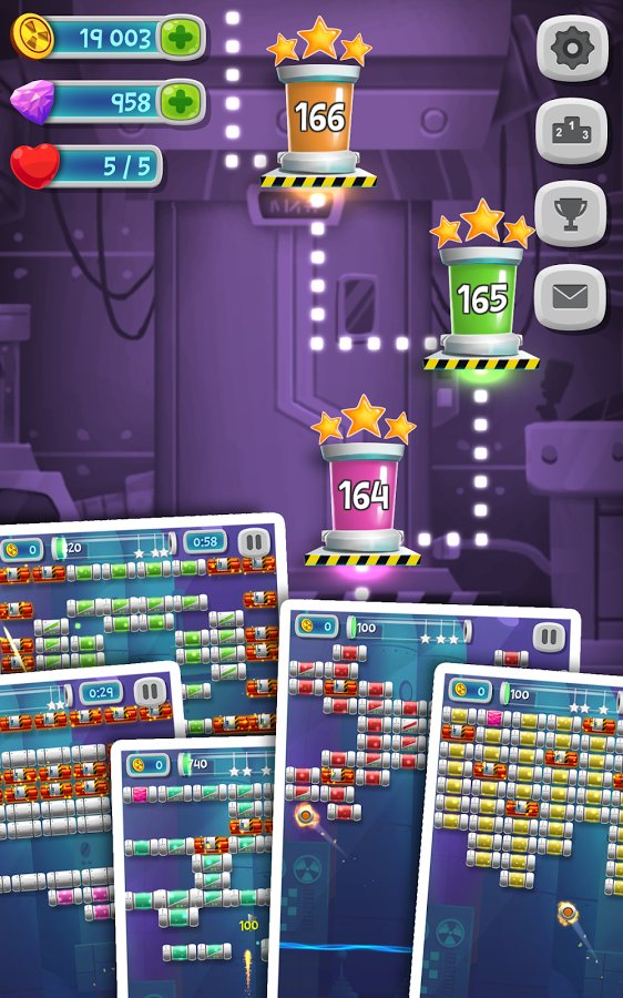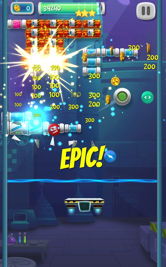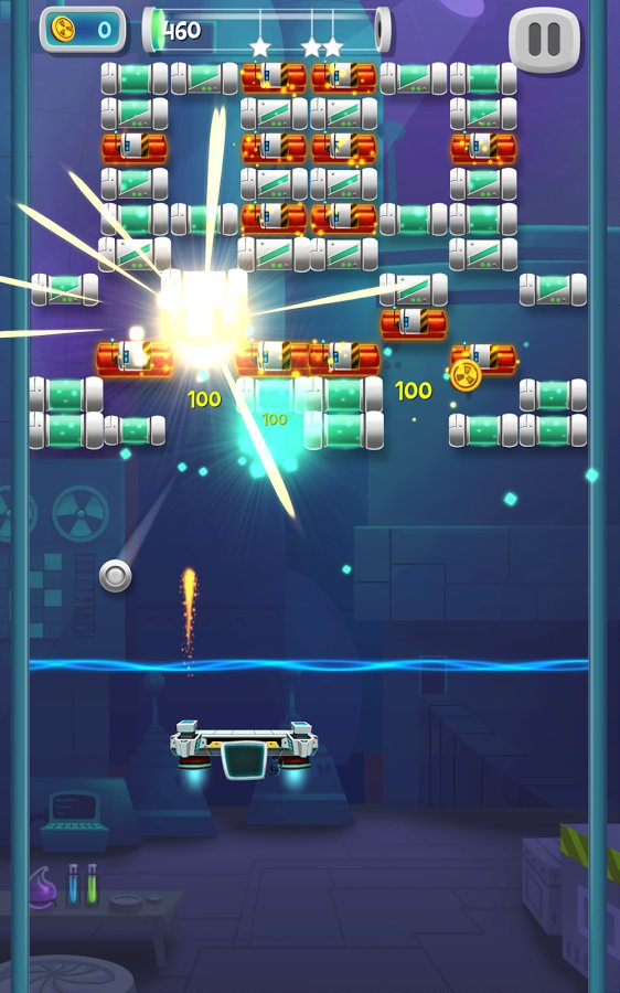Lab Brick Breaker – fun game for Android, made in the genre arkanoid. In this game you will help the scientist to clear his lab of a mad artificial intelligence. With the help of a moving platform, bounce the ball, running it up, so he broke the blocks filling the entire screen. Artificial intelligence controls the blocks that have unique properties and to destroy them you will have to make a little dexterity and skills kicking a ball. Don t let the ball fall down, otherwise the game will end. Use various bonuses and power-UPS as fast as you can go through the levels.