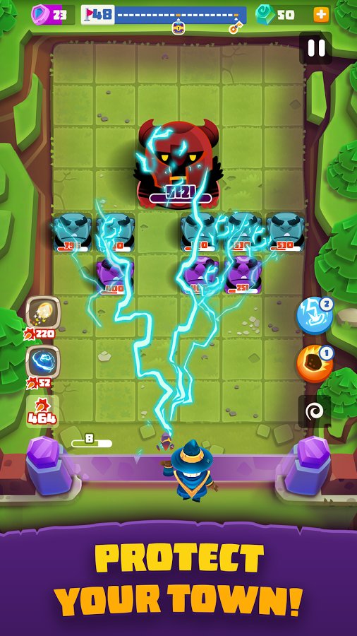 Bounzy! – a game on Android where you will help the wizard to kill monsters. In this game, the monsters got close to the peaceful town and only you can stop them. Throw in monsters, fireballs and lightning and destroy them. Use various spells and gain and don t let the enemy get into the city. This game is made in the genre arkanoid, and all the balls and zipper that you will start Bouncing off the walls, will destroy monsters. Destroy the approaching monsters and open the many chests with power-UPS and bonuses.