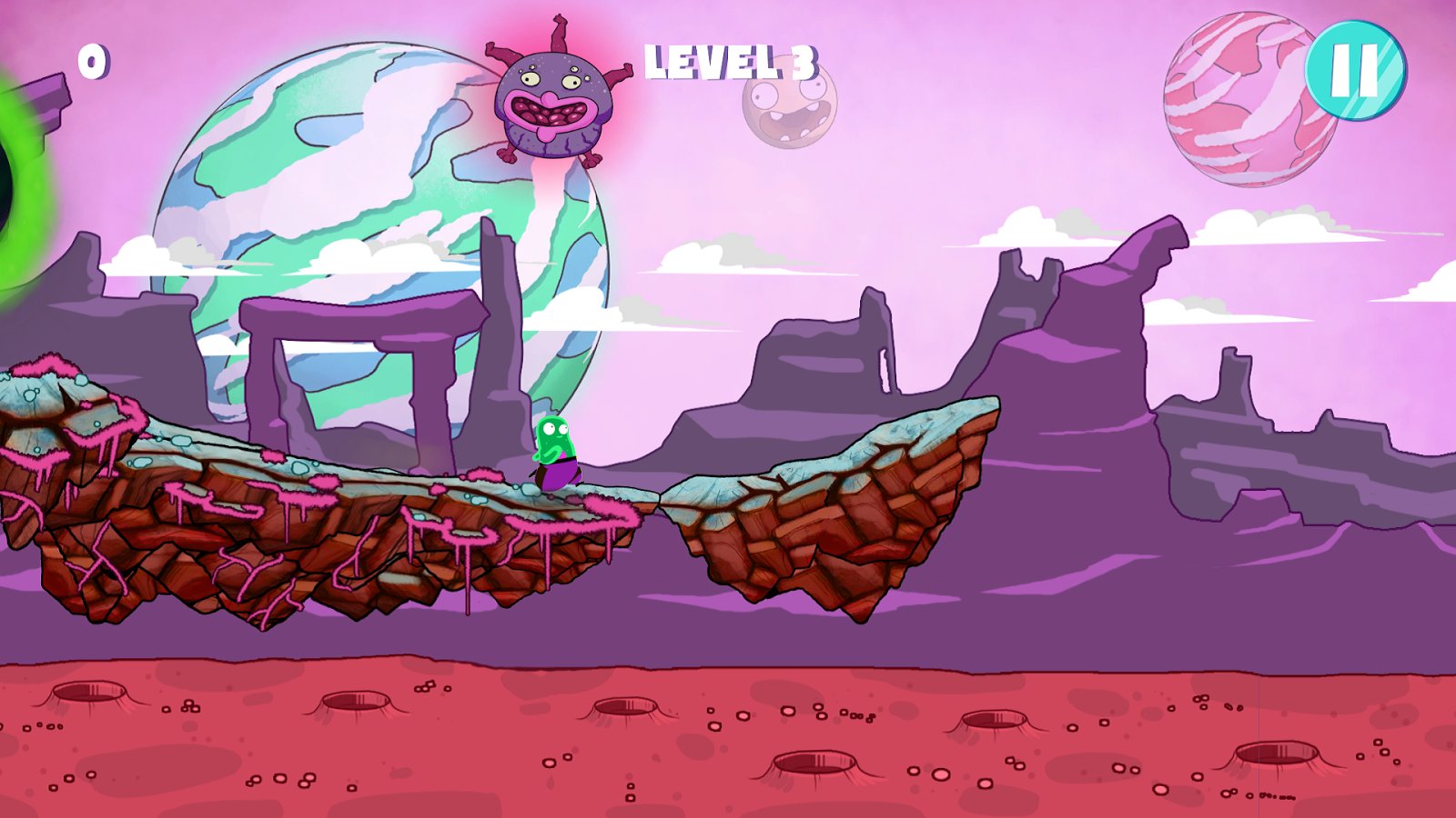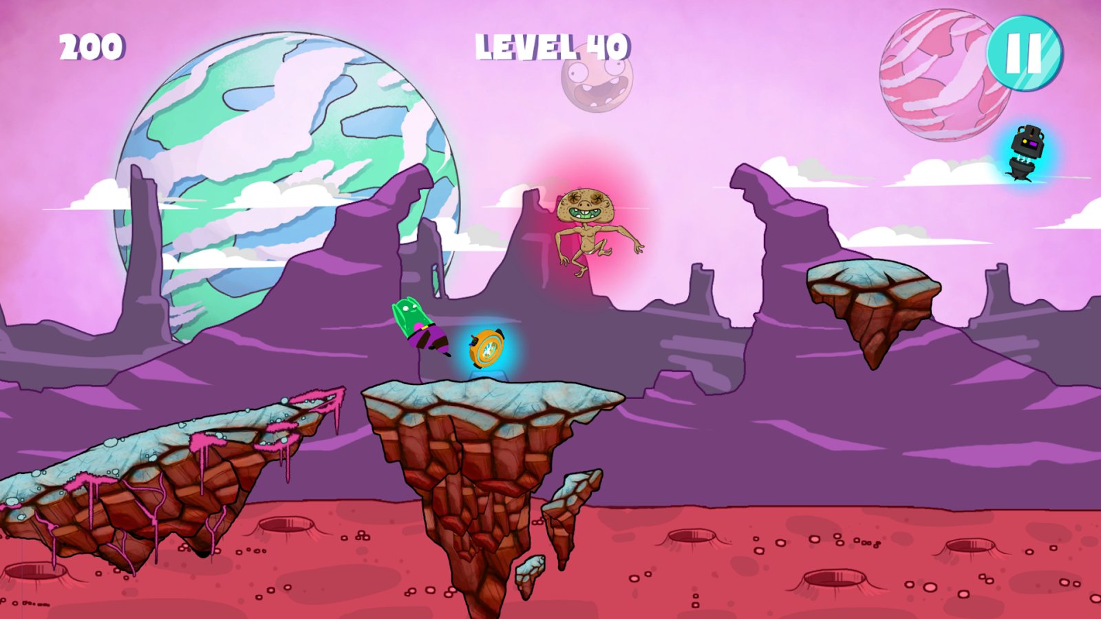 Game mechanics are also far from new, by means of taps your task is to control your character, jumping cliffs and ditches, avoiding traps and enemies and collecting the crystals. We should also mention the visual performance of the game, which was used psychedelic style.
