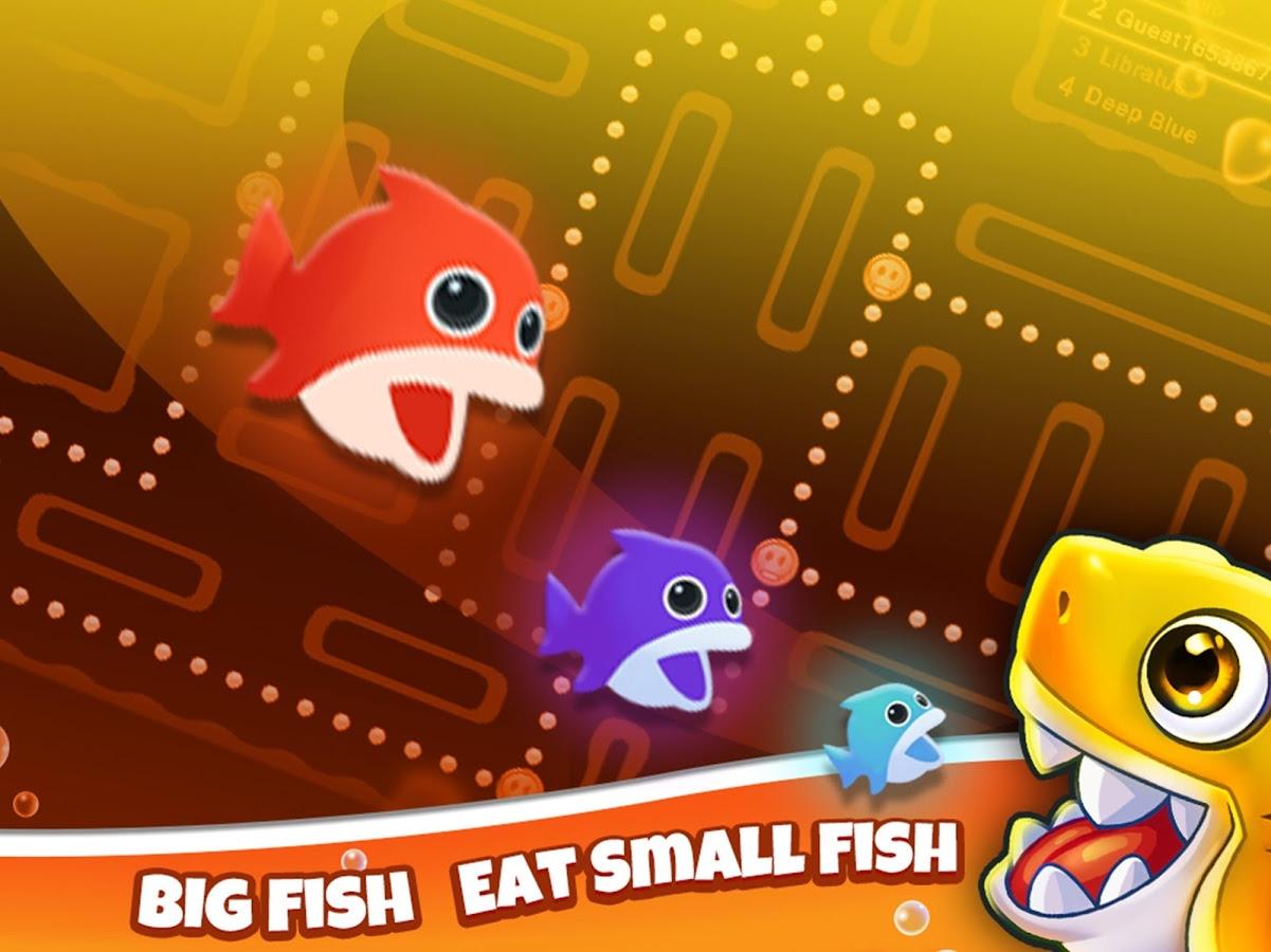 PAC-FISH Battle Royale is a fun game where you will control the movement of fish in the underwater maze. In this game your task will be to hold your fish on the intricate levels and collect all the coins on the way to increase in size. Control fish and test your great reflexes and reaction time, driving the fish forward and avoiding the many obstacles and enemies. Don t let the enemy keep you in it and eat you. Come one after the other difficult levels and try to increase the fish up to the maximum size. Set records in this game and compete with friends and other players from around the world.