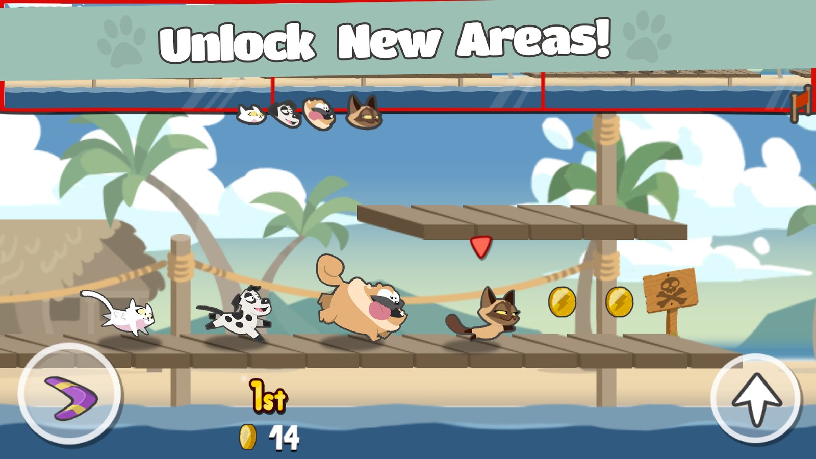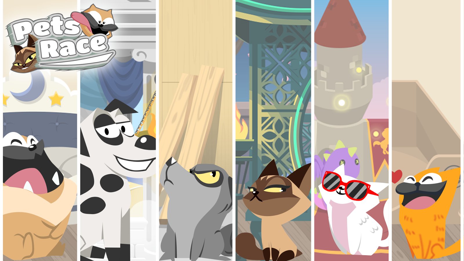 Pets Race - Fun Multiplayer Racing with Friends – multiplayer game for Android where you will run in the company of a rival. Choose your pet and run through various locations, trying to reach the finish line first. In this game you will be witness to the endless war between dogs and cats. Run forward and collect numerous coins and bonuses that will allow you to slow down your opponent or accelerate your character. Accept your part in the fast racing and improve your characters during the game. Collect coins and unlock for their characters, delicious sweets and equip the house.