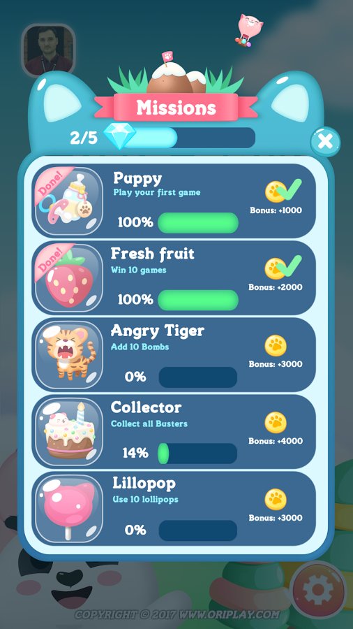 Cutie Paws - Oriplay Match 3 Game – an exciting game of the genre three in a row for Android. In this game your task is to shoot cute animals and destroy the rows of faces. In this game you will see field on which there are a variety of animal faces and your task is to blow them up. Create as long rows of animals and destroy them, thus getting as many points as possible. Use various bonuses and power-UPS and solve challenging puzzles in this game. Play this game and get maximum pleasure from the bright graphics, nice music and cute animals.