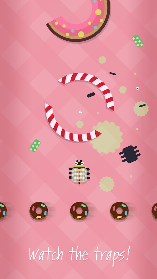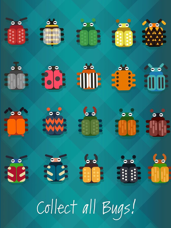 Buggs! Smash arcade! – control beetle and guide it through the numerous levels of the game. This game will please you simple and intuitive control, your task is to touch the screen at the right time, to the beetle crawled forward and remove your finger to the beetle stopped. Guide the beetle forward and help him get as far as possible avoiding the traps and moving objects. Discover new bugs, which will delight you with a unique look or create a new one. Get incredible achievements and Highscores in this game and compete with your friends.