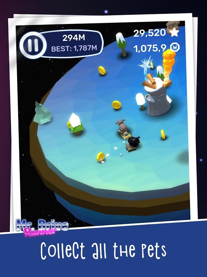 Mr. Drive Runner - race under the meteor shower – runner on Android, which will take you into deep space where you will operate your farm. In this game your hero lived on a flat planet in the vast cosmos and raised cows, sheep and rabbits, and was also a fan of various machines. But there was a meteor shower and you had to jump into one of the fastest cars and drive around the planet collecting their animals. Drive at high speed around the planet and collect in your car animals while trying to avoid all the obstacles in his way. Collected animals you can put in a rocket and send into outer space or to another planet to her uncle. Enlist the help of UFO and collect the animals together.